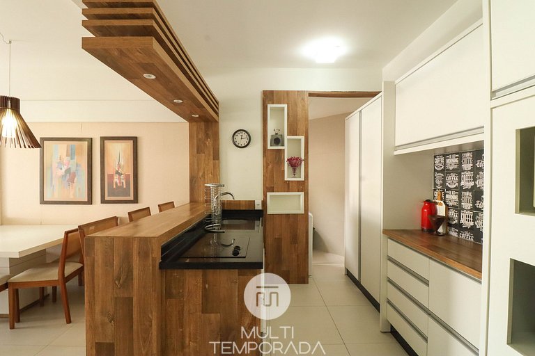 Master Suite Apartment - 1 bedroom suite with double bed, 1 bedroom with 2 single beds, 1 living room with sofa bed and bunk bed, air conditioning, full American kitchen, service area, 1 social bathroom and 3 balconies (one with barbecue ).