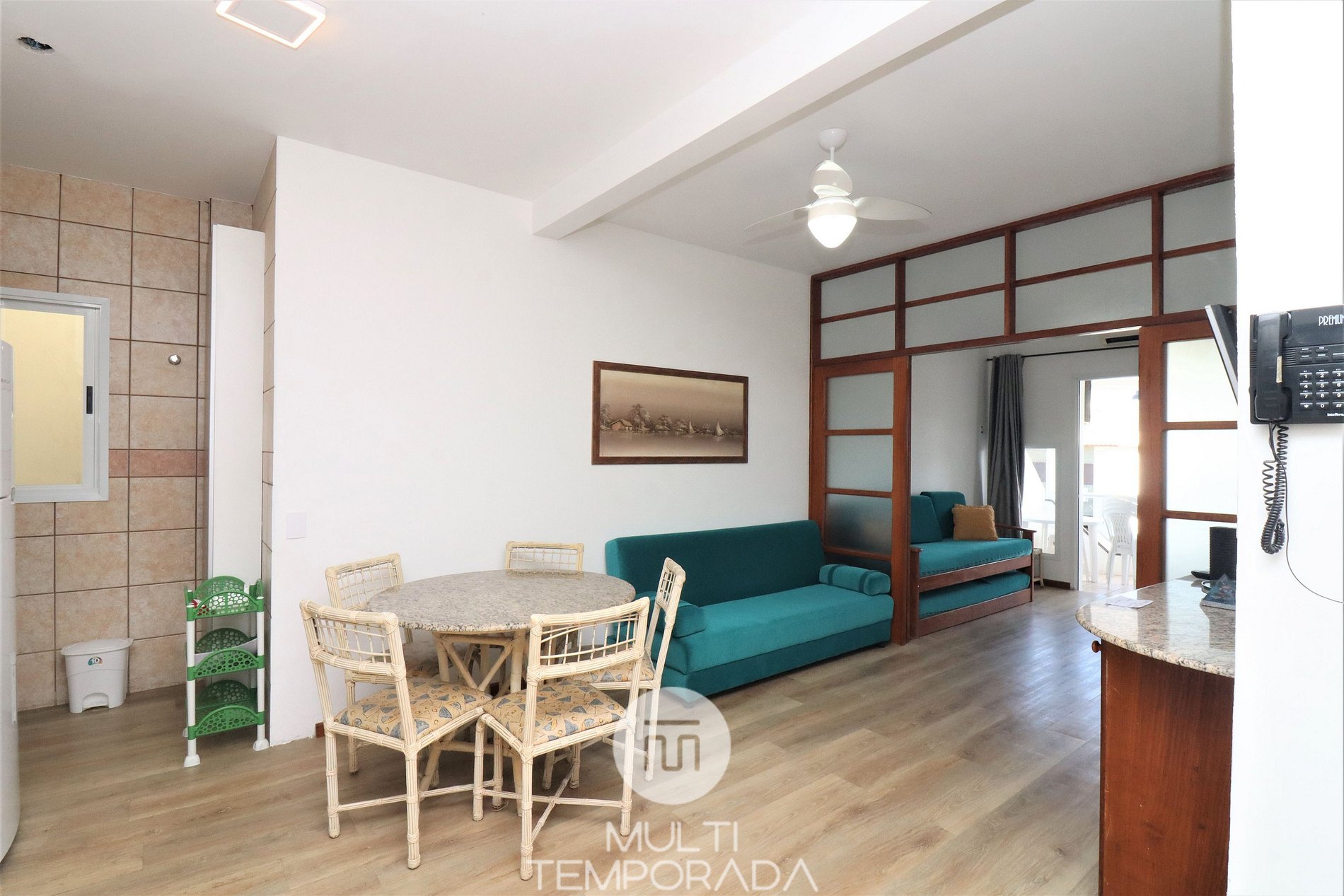 Suite Apartment - 1 bedroom with double bed, air conditioning, 1 living room with two rooms, one with a sofa bed and the other with a pull-out bed, complete kitchen, 1 bathroom and balcony with barbecue
