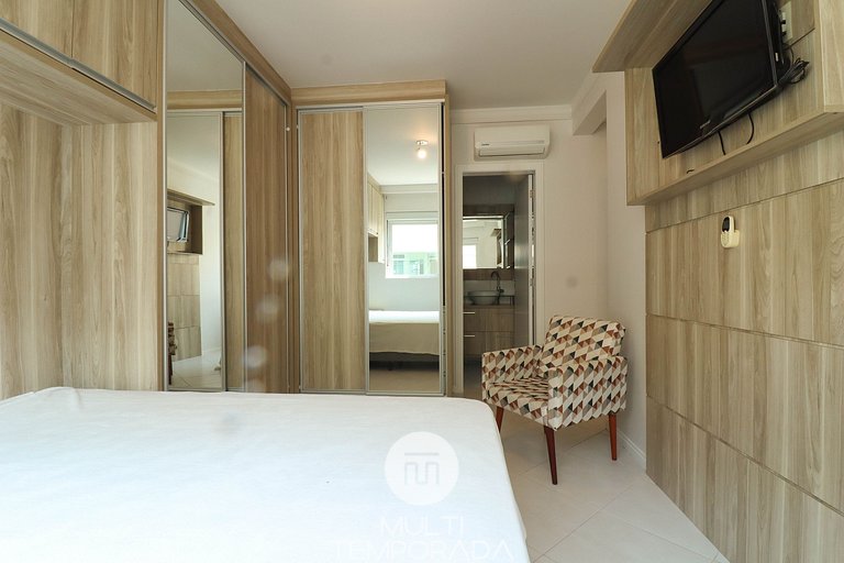 Spectacular apartment 300 meters from the beach, consisting of three bedrooms, one suite with a double bed, one bedroom with a single bed and an extra bed and a third bedroom with a single bed and an extra bed, large living room with dining table, air conditioning in all rooms, social bathroom and toilet, large balcony with barbecue and sink, full kitchen, service area with washing machine. It has two parking spaces, has Wi-Fi. Enjoy the best.