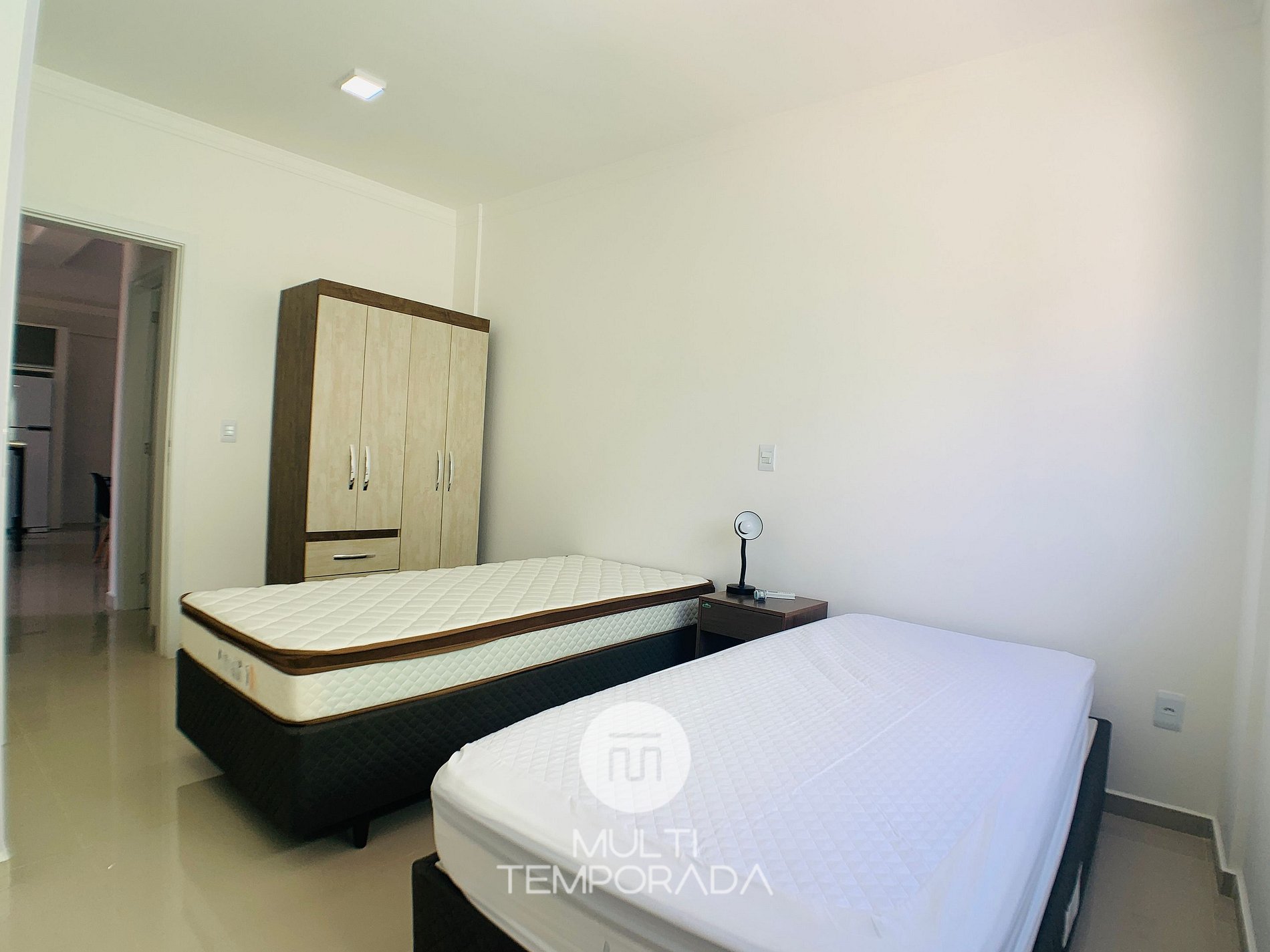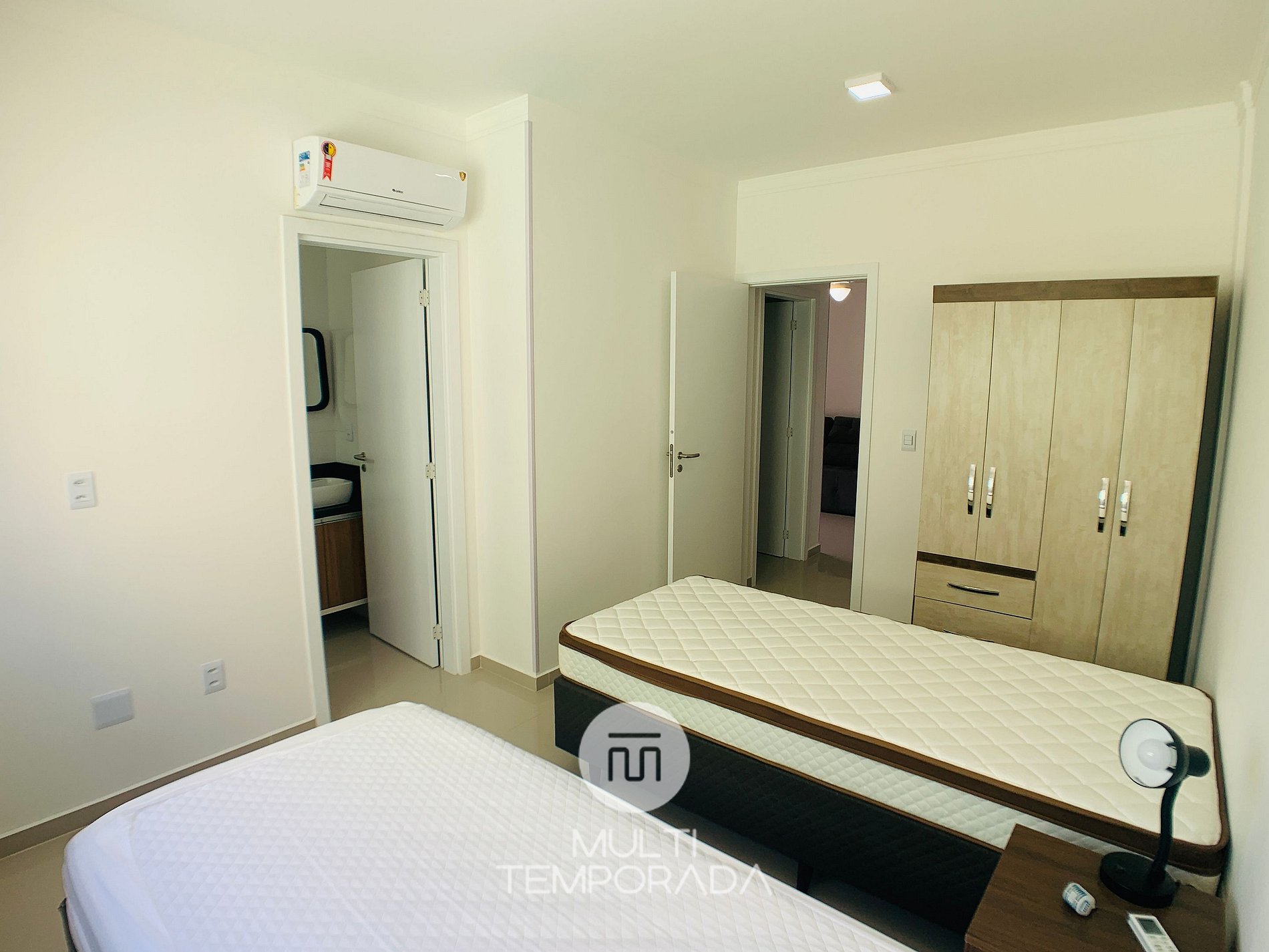 Equipped with 1 double bed and 2 single beds. We do not work with extra mattresses.