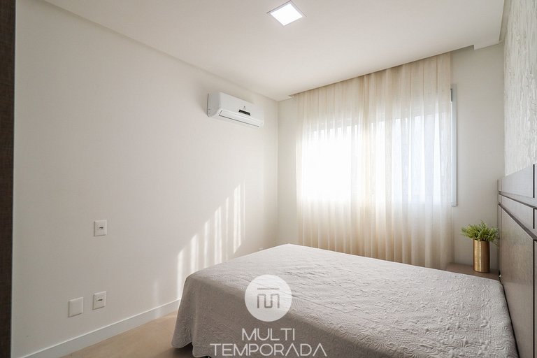 O apartamento é lindo, moderno e agradável. Todo planejado com muito bom gosto. Ambiente familiar e super aconchegante. Cozinha e lavanderia equipadas. Sistema de aquecimento a gás. Banheiros impecáveis. Sacada com vista para a rua e piscina, e também para a paisagem, muito legal. Ambiente totalmente climatizado, excelente. Não faltou nada! No entanto, um ponto de melhoria: as camas. O condomínio é limpo e bonito, com ducha externa, piscina e salão de festas, além do serviço de zeladoria e portaria, que nos recebeu muito bem e ajudou quando preciso. Quanto a imobiliária (que fica há poucos metros): mesma coisa! Atendimento cordial, rápido, claro e com boa comunicação. Já conhecíamos a ilha, a região e a praia, mas foi como uma primeira vez. 100% realizado e satisfeito! Recomendadíssimo!