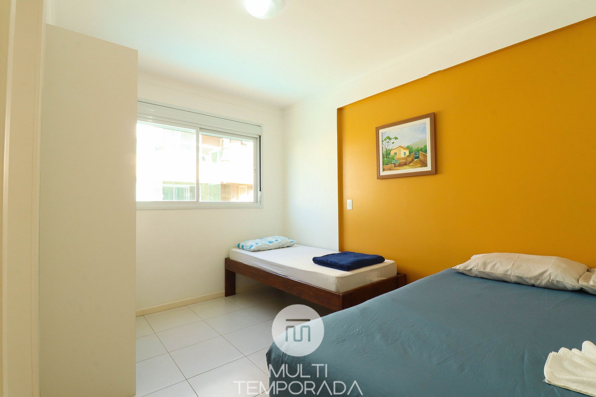 Beautiful apartment just 600 meters from the beach, featuring two suites with double beds, plus two single beds with trundles and air conditioning. It also offers a guest bathroom, a balcony with a barbecue grill and sink, a fully equipped kitchen, and a laundry area with washing machine and utility sink. Includes one parking space, Wi-Fi, and cable TV. Comfortably accommodates up to 6 adults and 2 children.