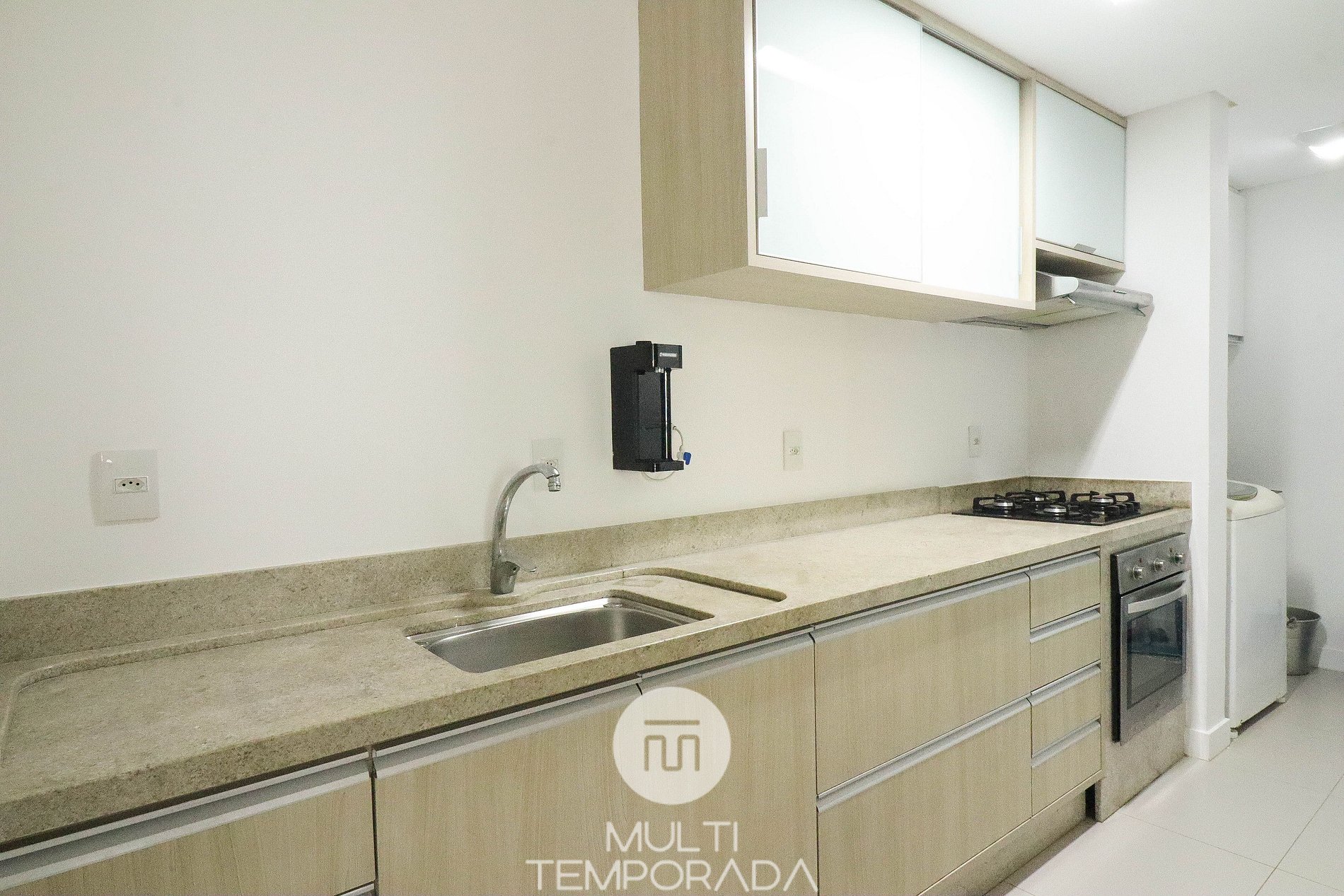Beautiful apartment, 200 meters from the beach, consisting of two bedrooms, one suite with double bed and air conditioning, a bedroom with double bed and air conditioning, guest bathroom, balcony with barbecue and sink, full kitchen, living area service with tank. It has a parking space and has Wi-Fi.