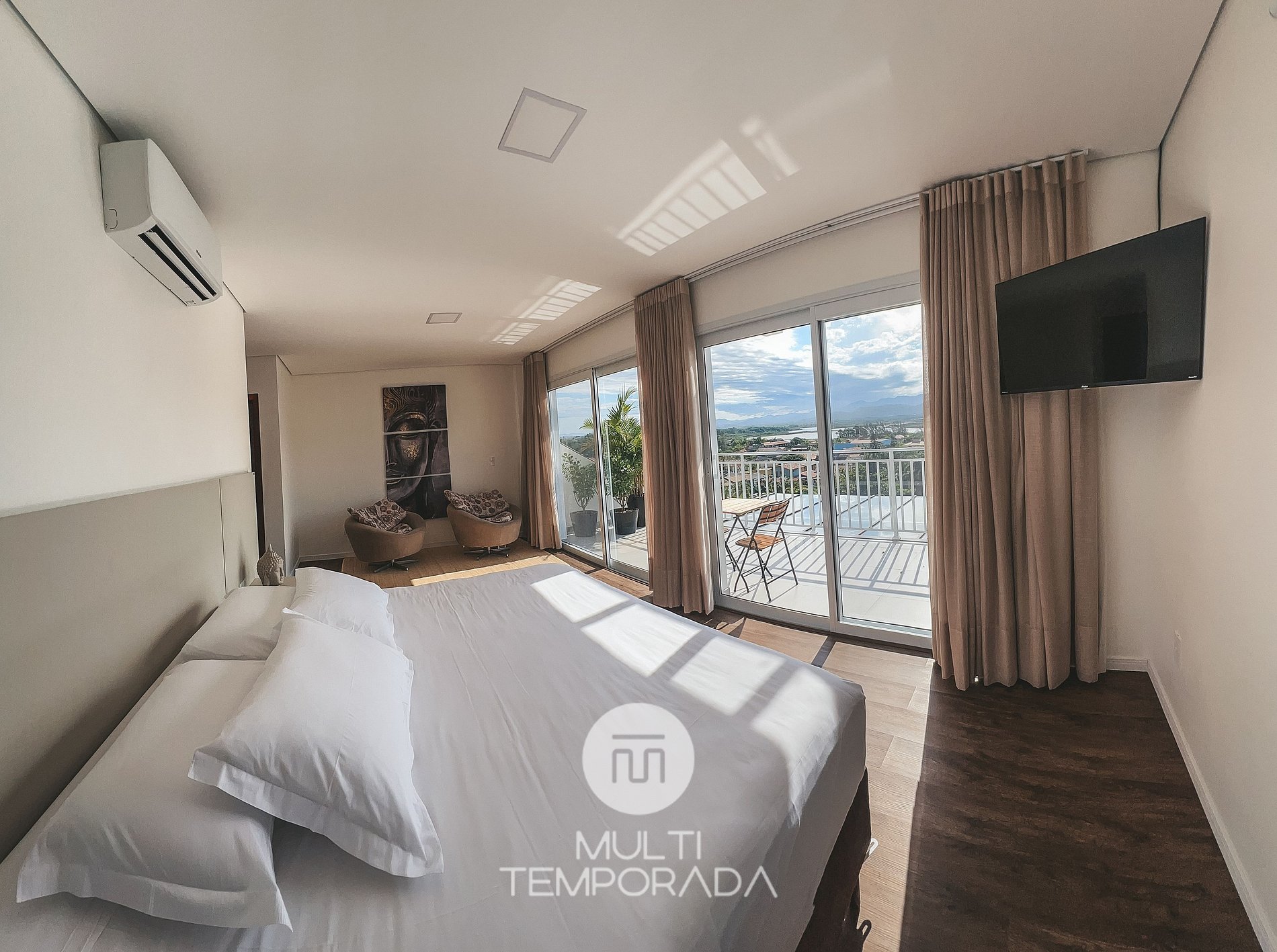 Master Suite: Cama King-Size, Aire Acondicionado, Closet y Balcón con vista a la Laguna;
