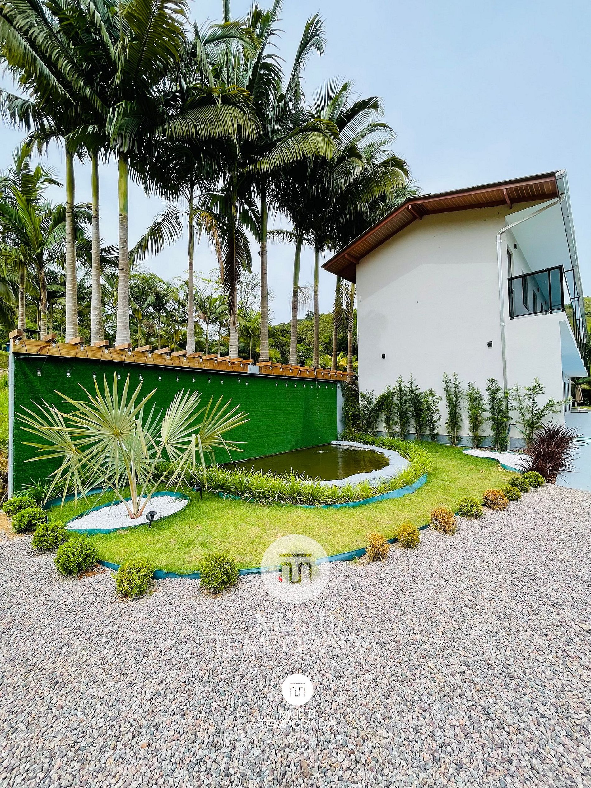 El espacio también cuenta con un pequeño lago con jardín justo en la entrada, que aporta encanto y contacto directo con la naturaleza.