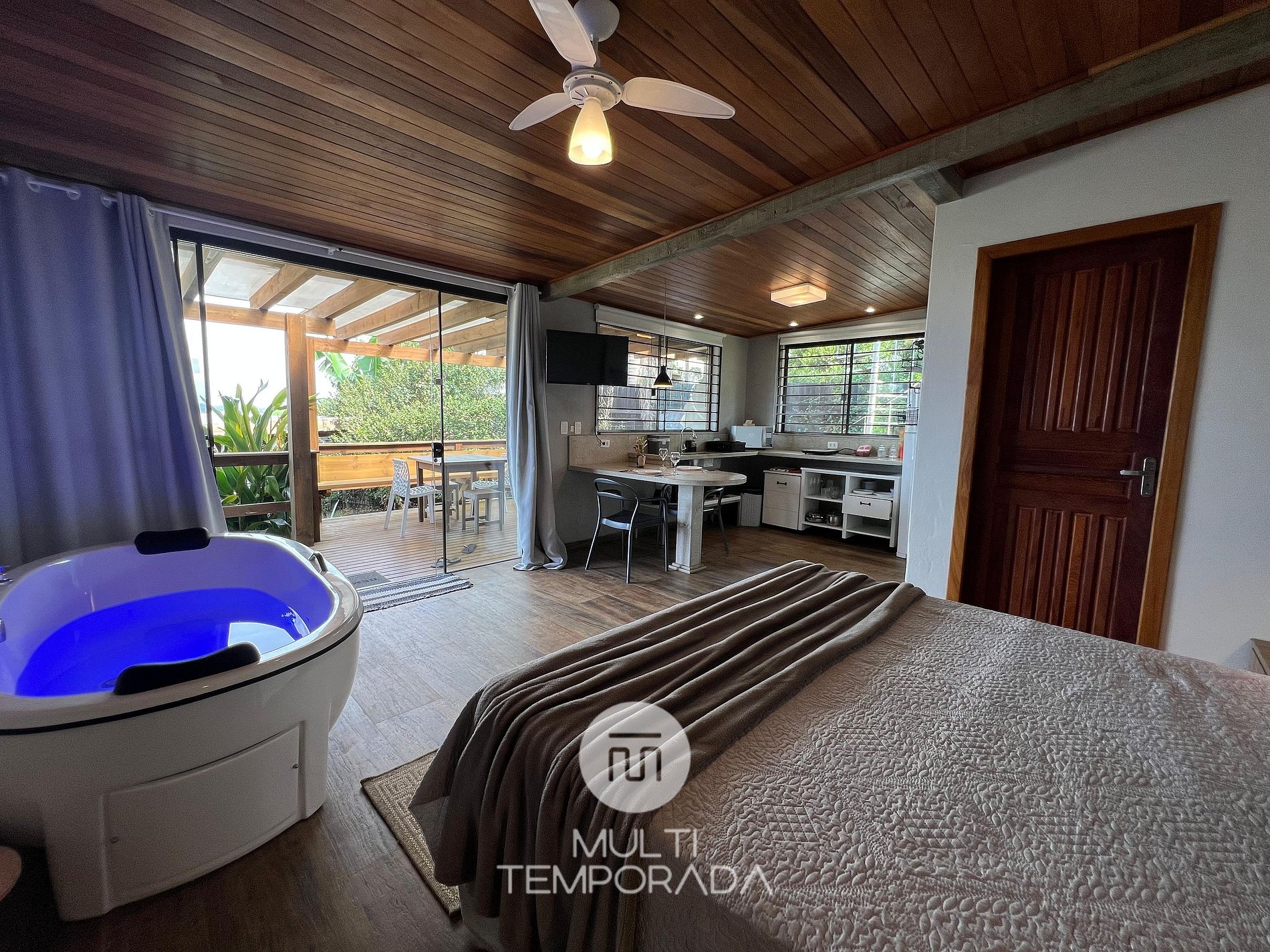 Multitemporada.com presenta Chalés e Bangalôs Ibiraquera, fantástico alojamiento que cuenta con 6 unidades y que tiene como diferencial una ubicación privilegiada en Ibiraquera, costa de Santa Catarina. La propiedad está en una gran parcela, con un chalet y cinco bungalows, todos independientes e igualmente cómodos.