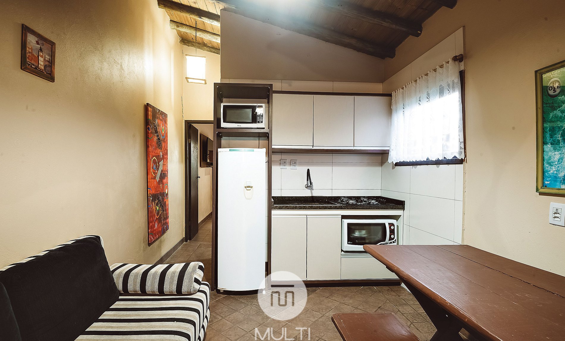 Bangalô 5, tiene 45², cuenta con 1 dormitorio, sala, cocina completa y balcón con barbacoa, garantizando mayor comodidad y bienestar a los huéspedes;