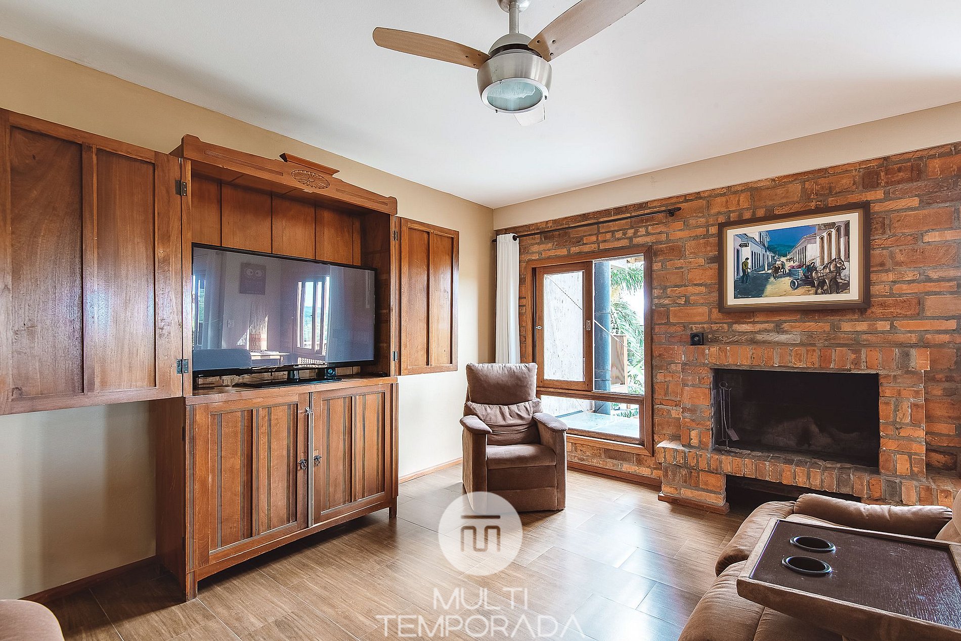 Salón: Amplio sofá, chimenea interior de leña, Smart TV 43 con canales de pago;