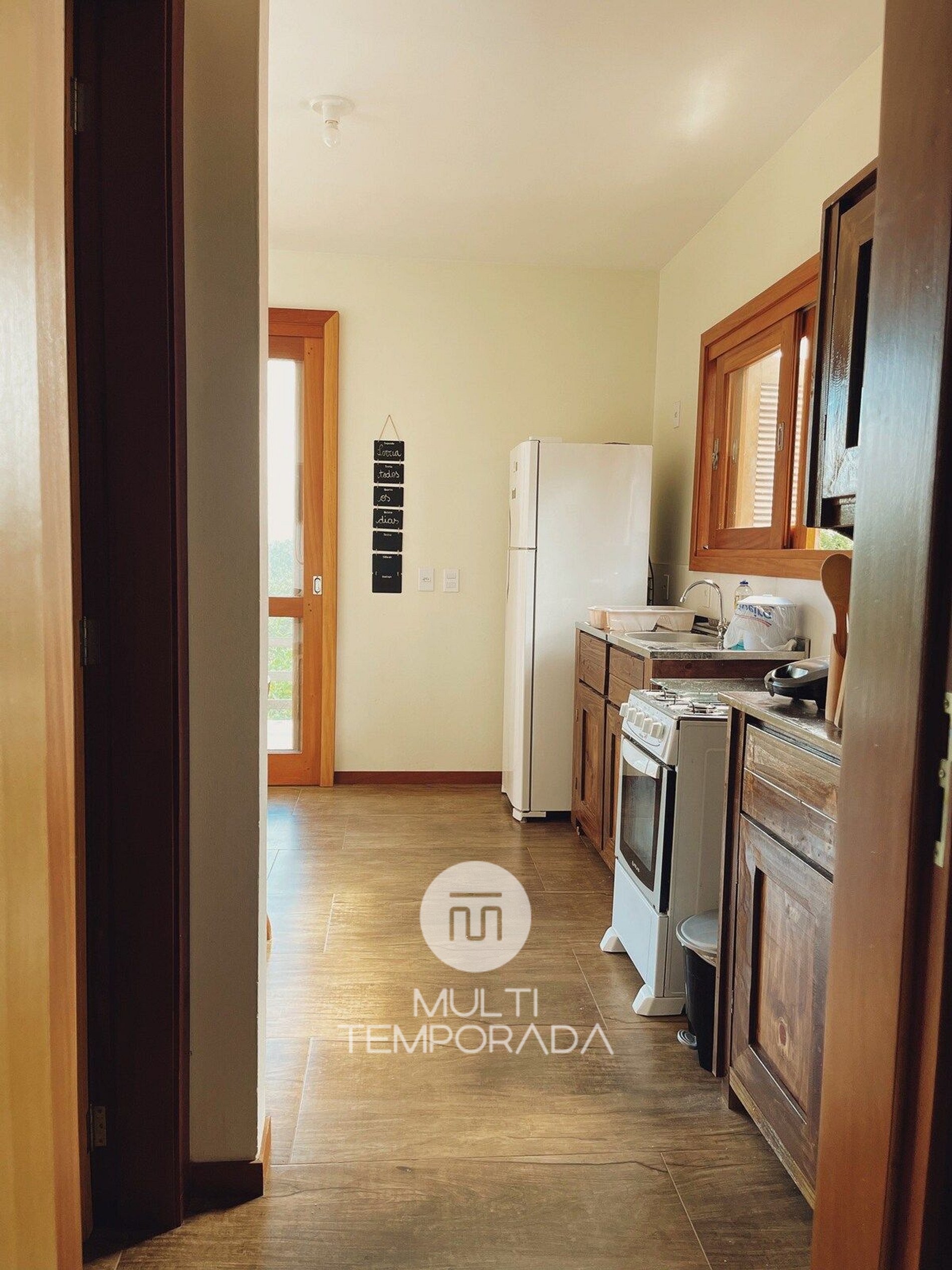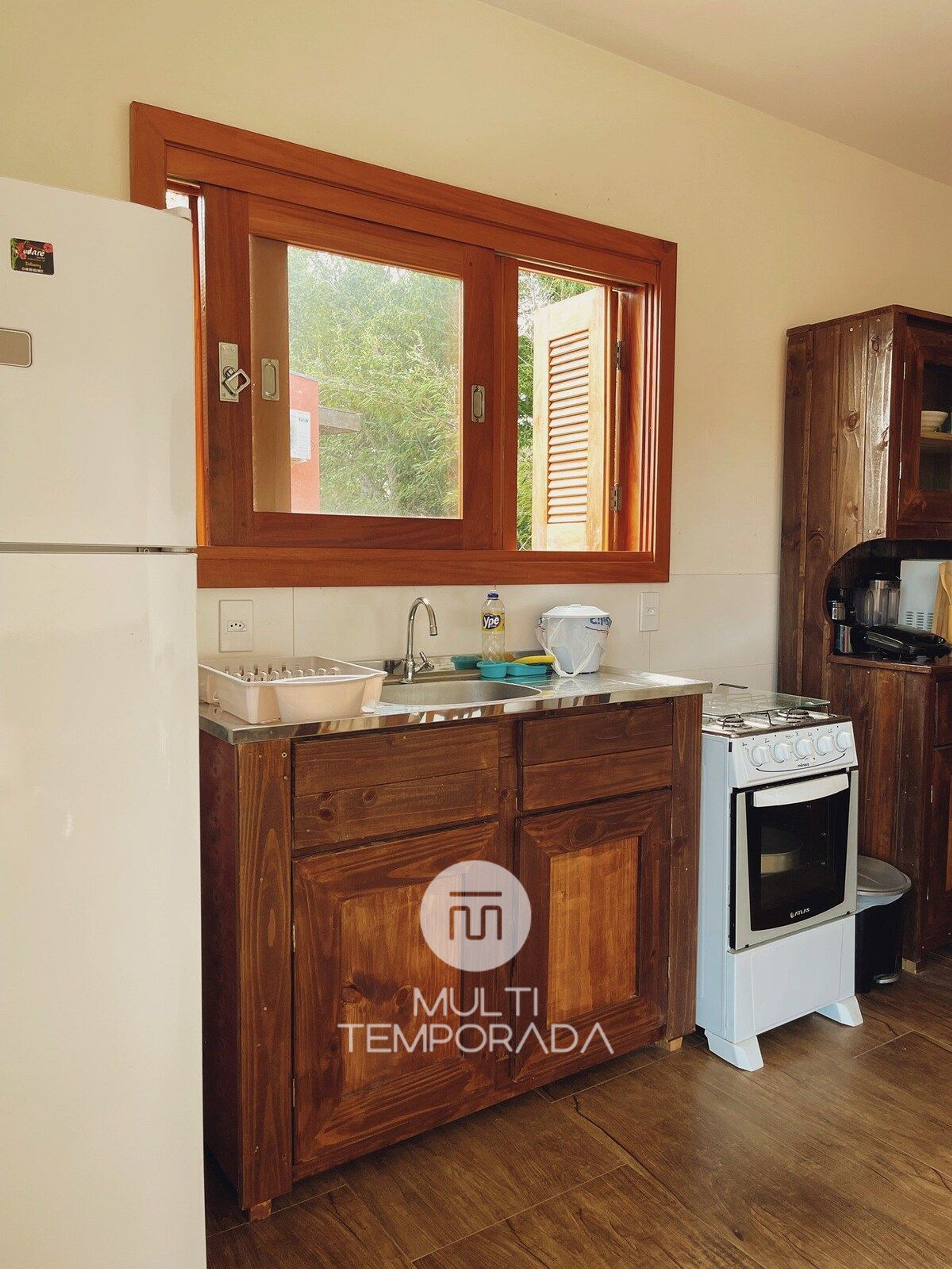 Nuestro alojamiento cuenta con internet wifi de 200 megas, Smart TV de 29'', ropa de cama, almohadas y frazadas. La cocina completa cuenta con: heladera, estufa, horno, microondas, sandwichera, vajilla y cubiertos y utensilios de cocina.