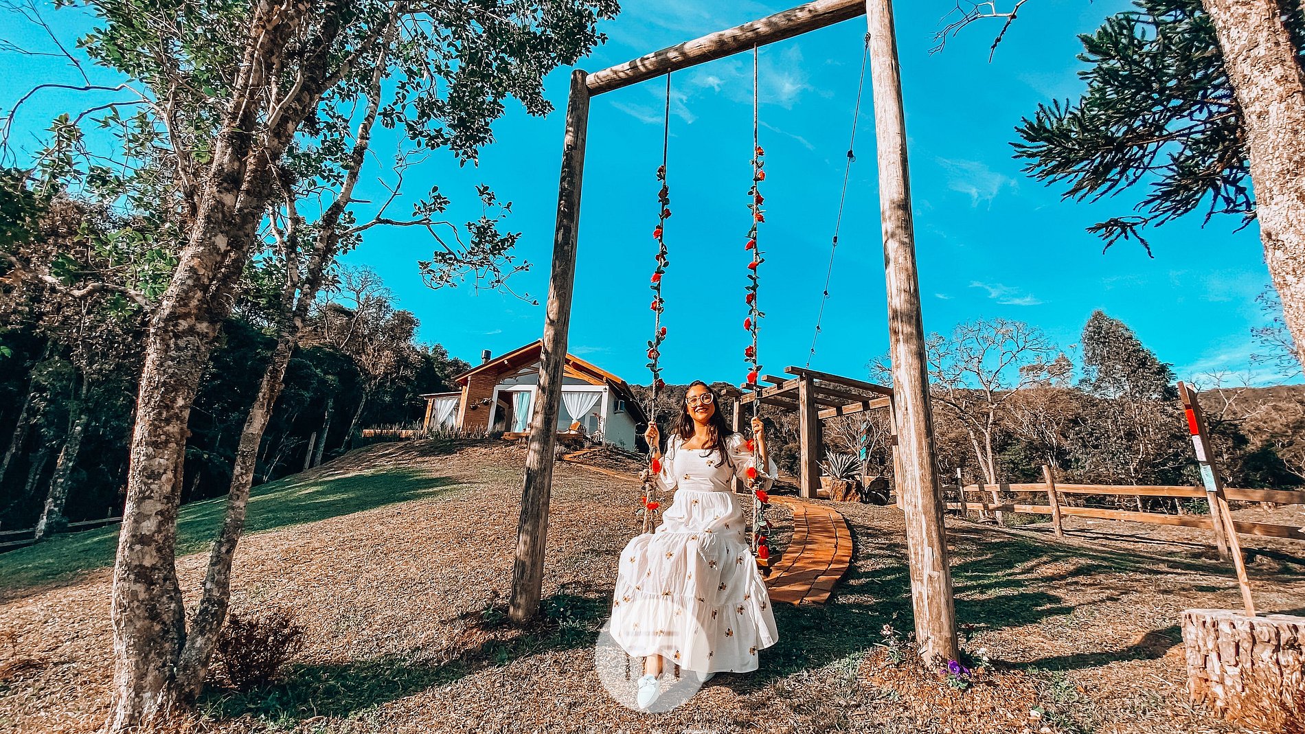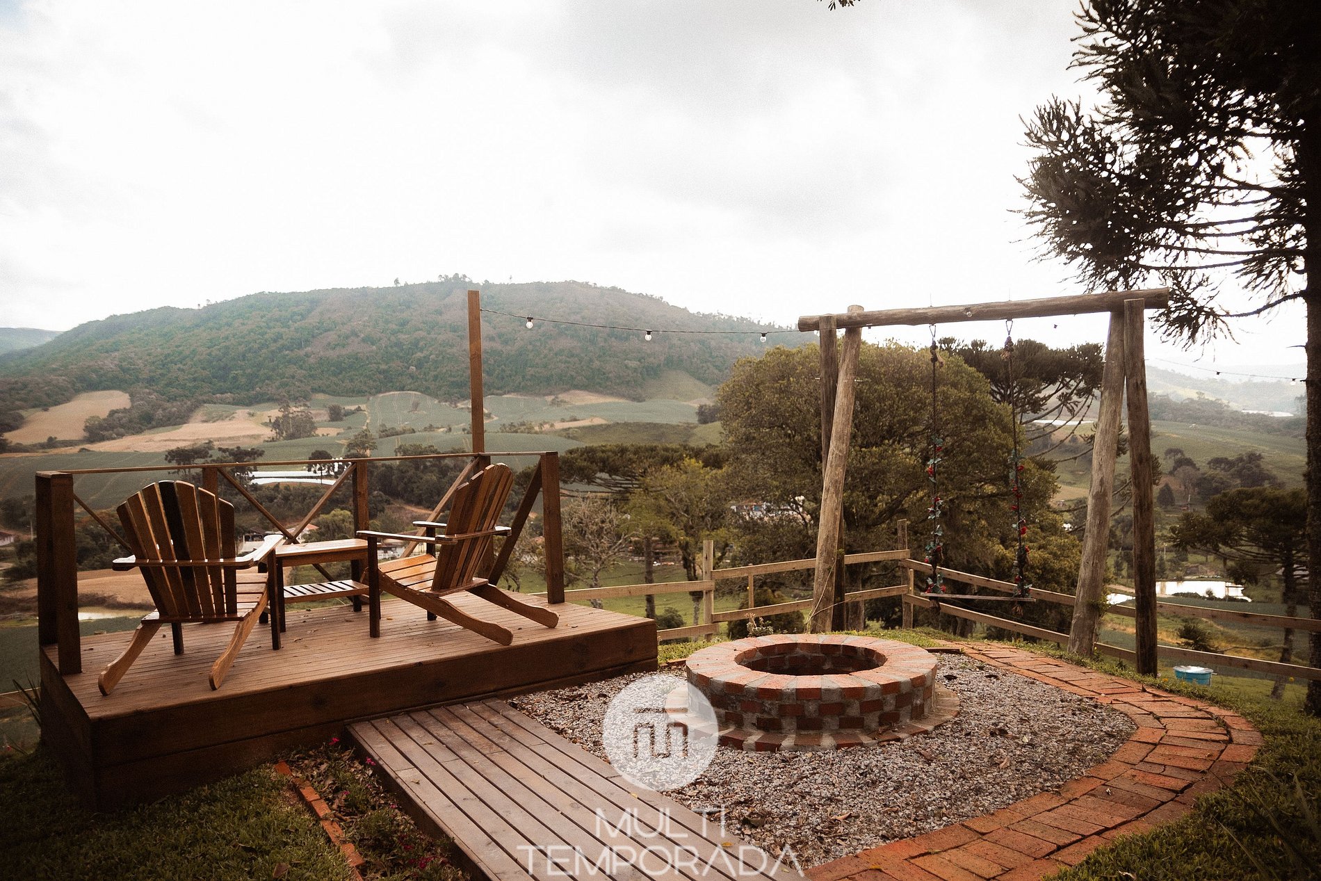 El terreno es amplio y rodeado de naturaleza, con un hermoso columpio, vistas a las montañas y acceso a tres lagos. Todo está pensado para brindar el máximo confort a nuestros huéspedes, para que se sientan como en casa, en un refugio perfecto para descansar y descubrir lo mejor de la Serra Catarinense.