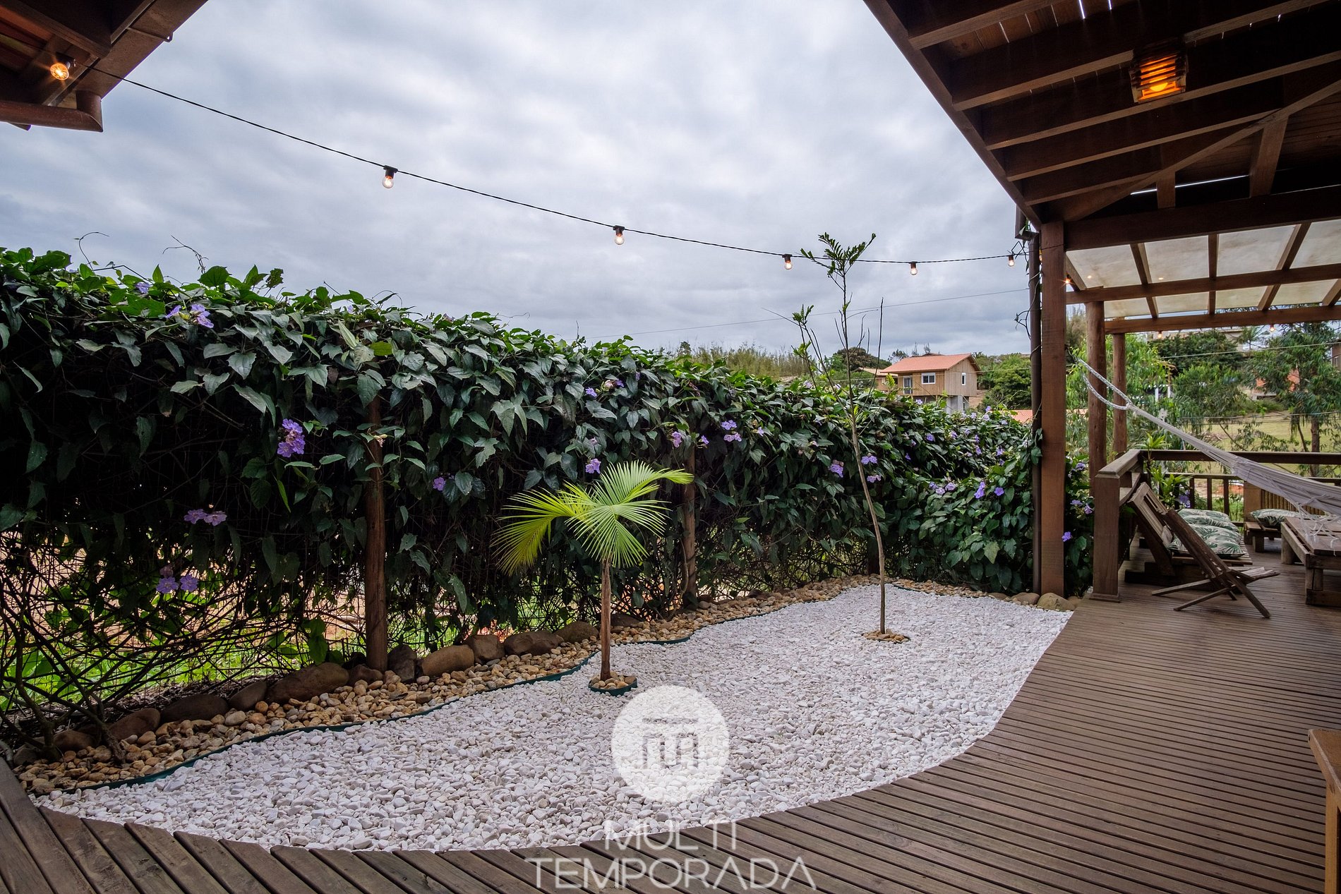 Servicios del apartamento: Internet Wi-Fi de 500 Mbps en toda la casa, Smart TV de 32" con Netflix, Globoplay + Channels y YouTube, ropa de cama y toallas de excelente calidad, lavadora y estacionamiento para 4 autos. El balcón tiene 24 m², dos de las habitaciones también cuentan con balcón, y la pérgola, junto con la terraza frontal de 40 m², le da un toque estético único. Todo con excelentes vistas de la región de Ibiraquera.