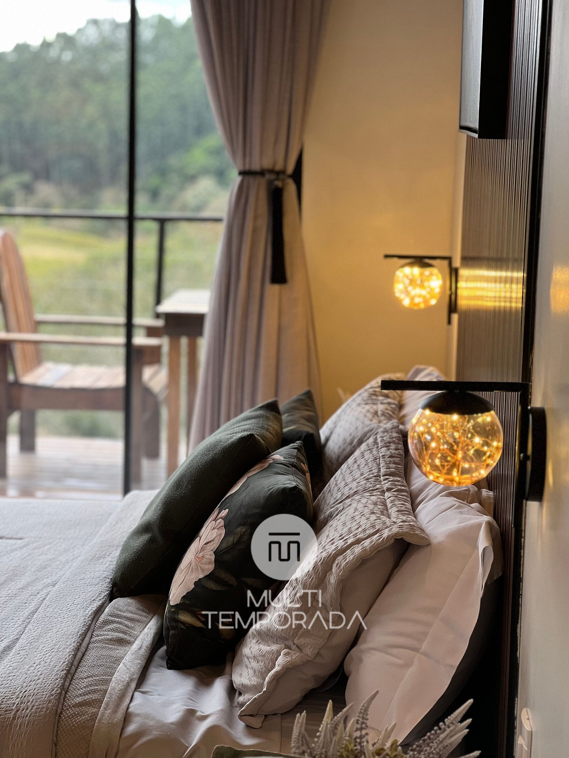 Con espacios integrados y 36 m² de espacio interior, el chalet ofrece una experiencia de alojamiento completa, combinando rusticidad, comodidad y practicidad. La cama tamaño queen, con sábanas de alta calidad (Karsten de 400 hilos), cómodas almohadas, suaves mantas y toallas extragrandes garantizan noches de descanso profundo y días de puro bienestar.