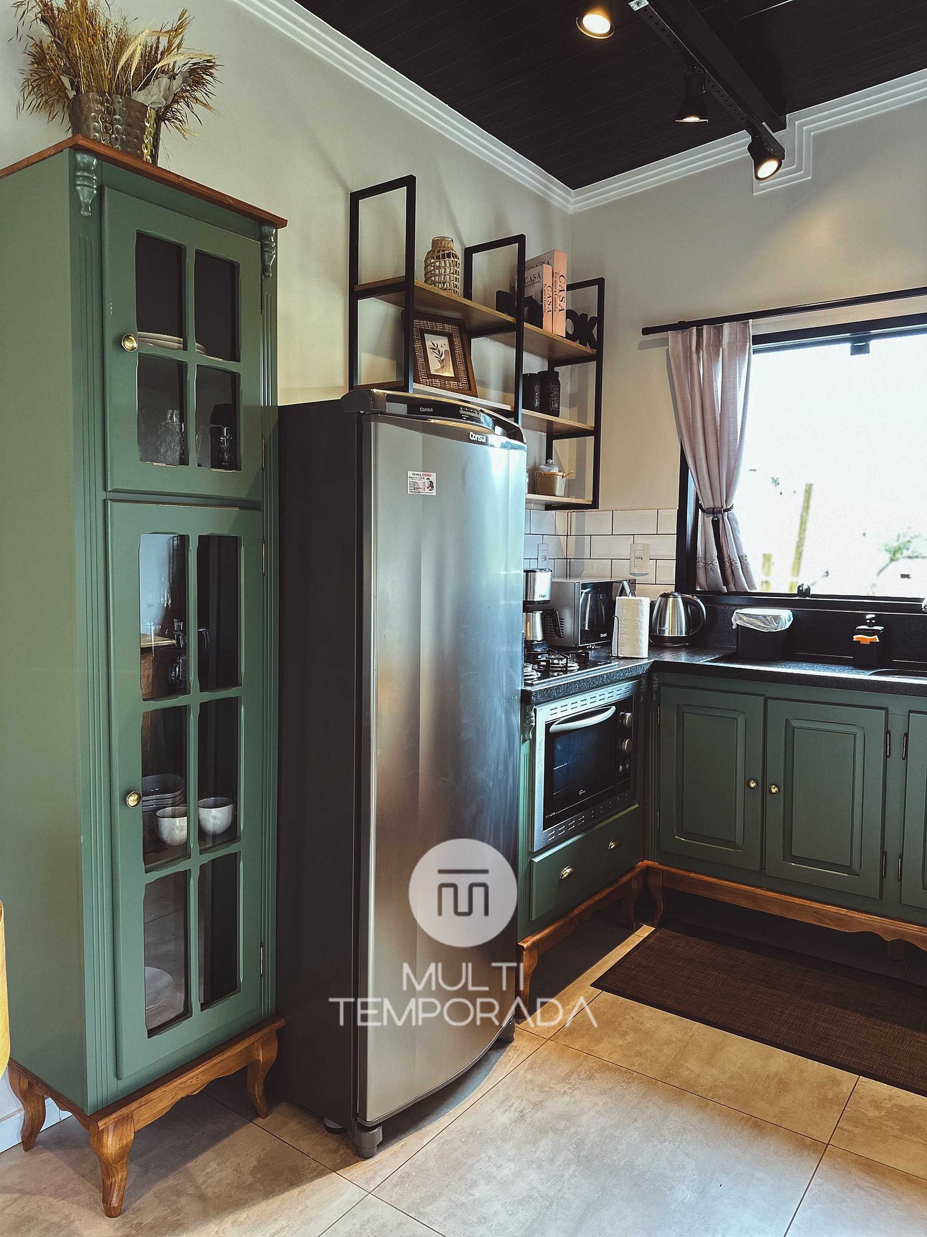 La cocina está totalmente equipada con grifo de gas, estufa, horno, refrigerador, microondas, vajilla, cubiertos y diversos electrodomésticos como hervidor eléctrico, licuadora, sandwichera, cafetera y bandeja para pizza. También proporcionamos artículos básicos como café, azúcar, arroz, pasta, aceite y especias; todo para que la experiencia sea más cómoda y acogedora.