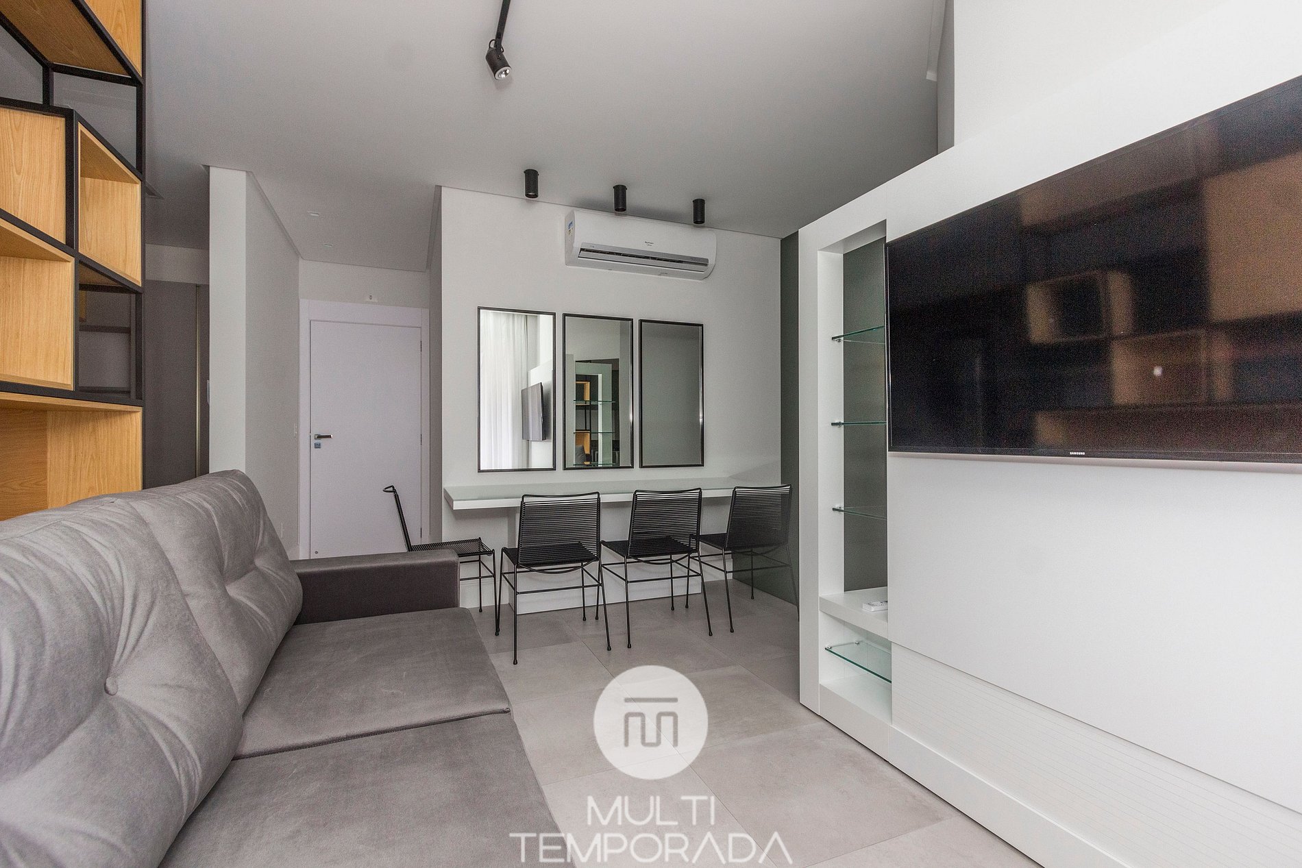 - Comedor, cocina completa, balcón con parrilla, con aire acondicionado en todos los ambientes.