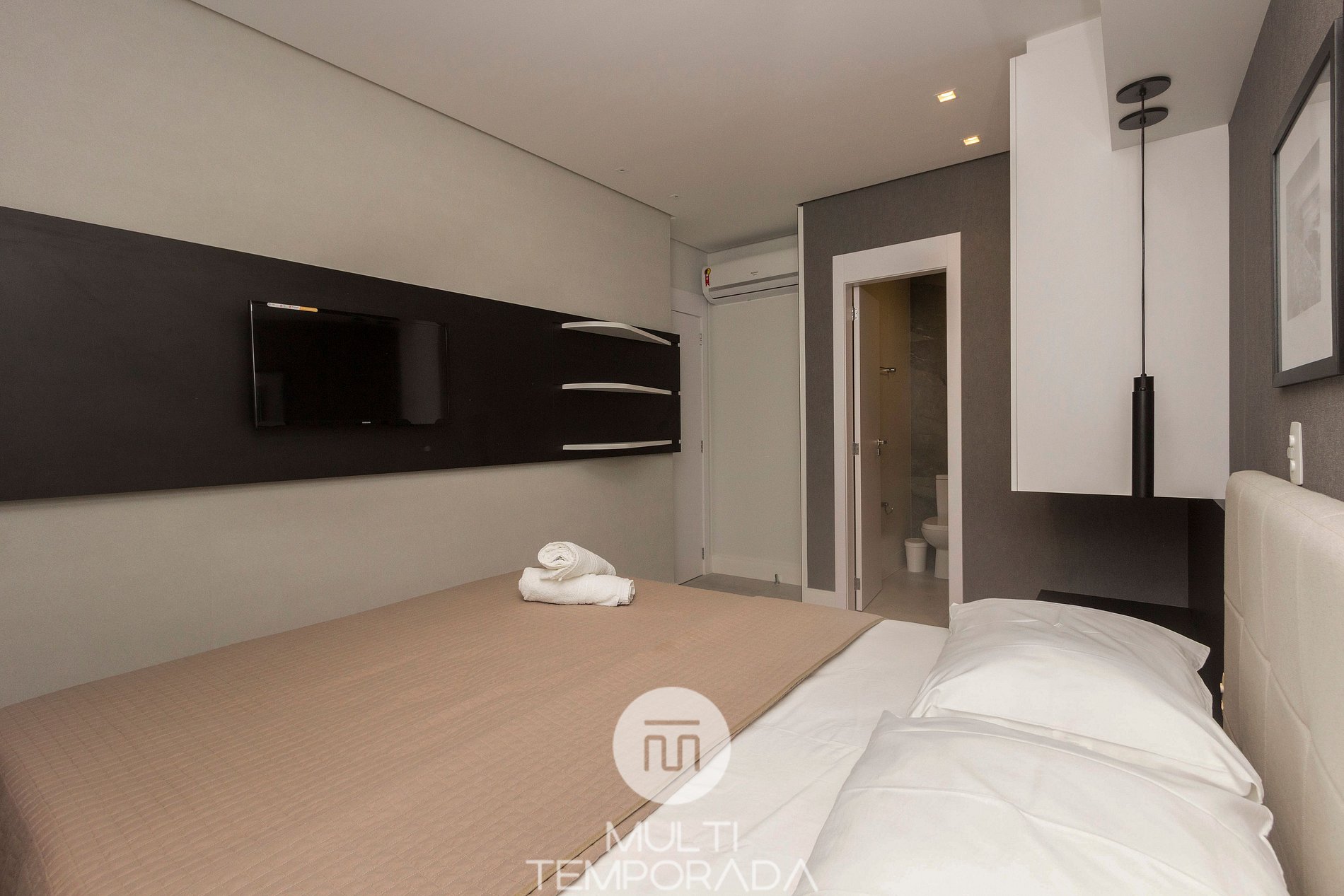 - 2 dormitorios, 01 suite con cama de matrimonio, 01 habitación con 2 camas individuales.
