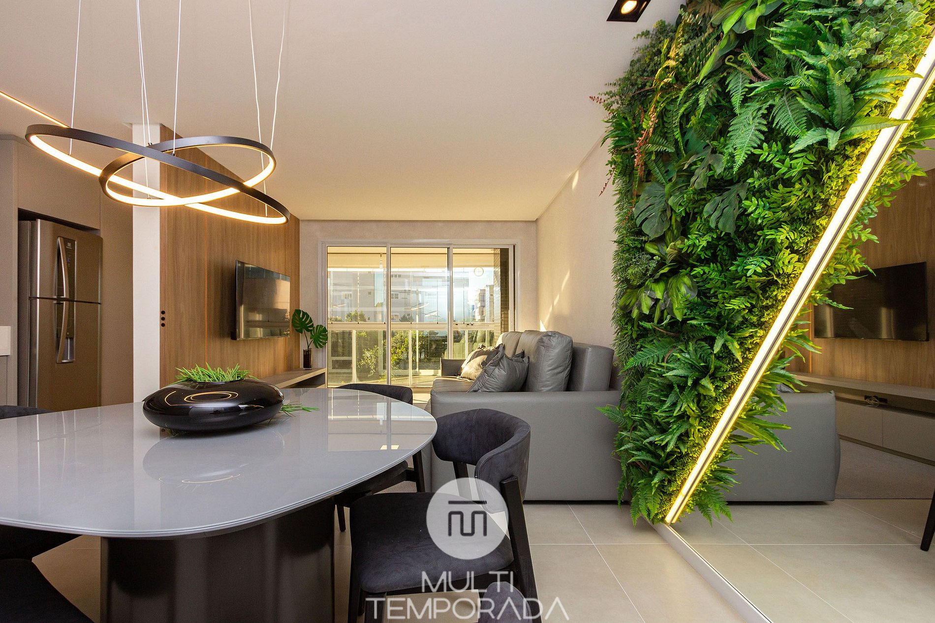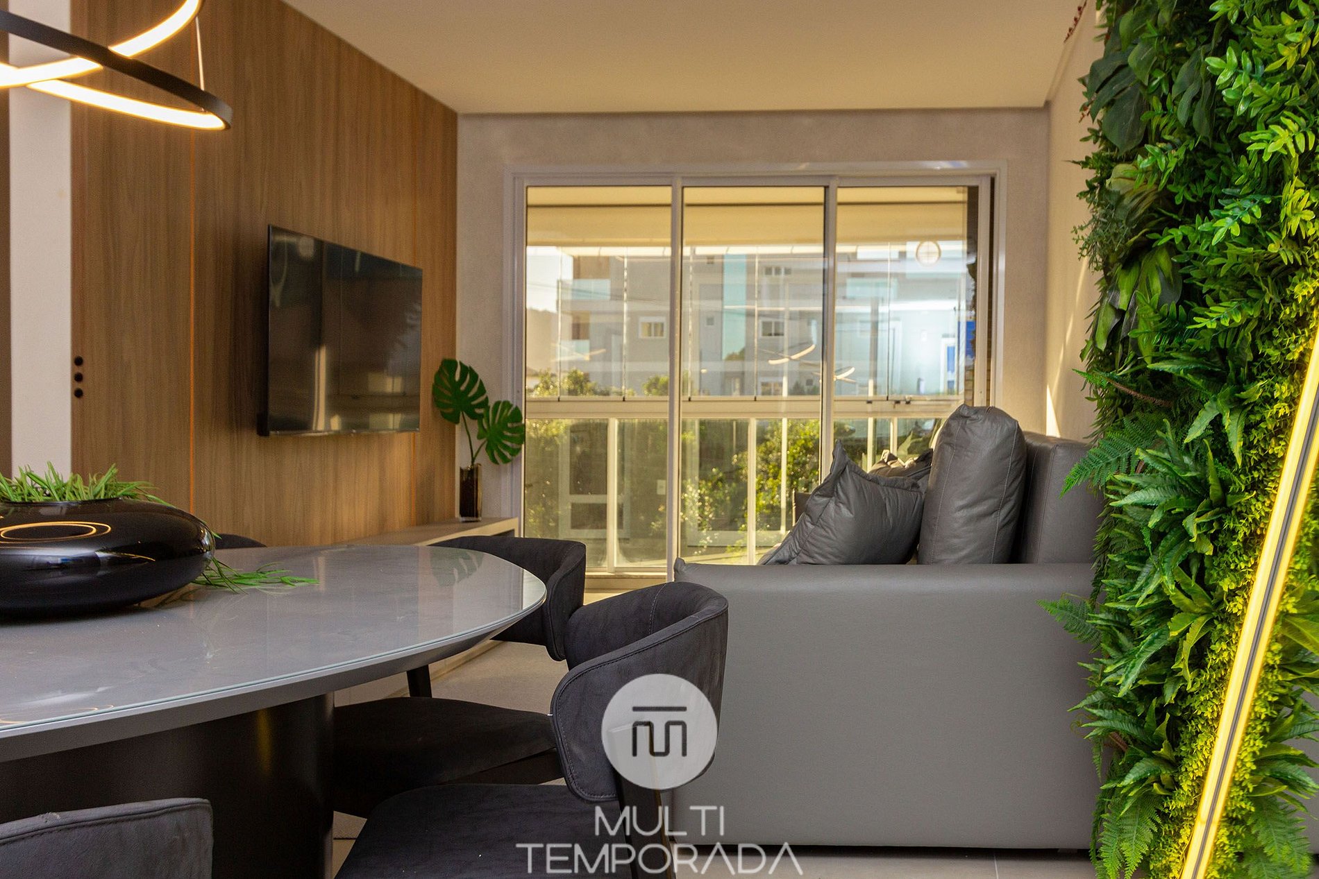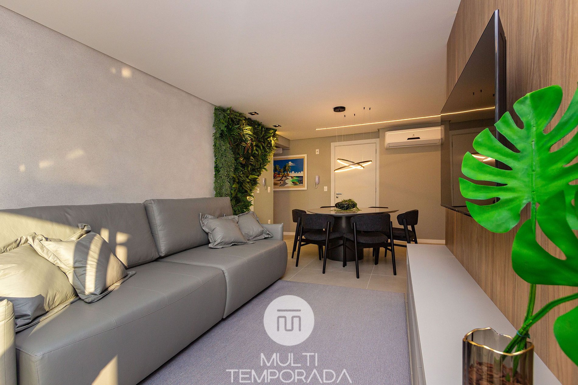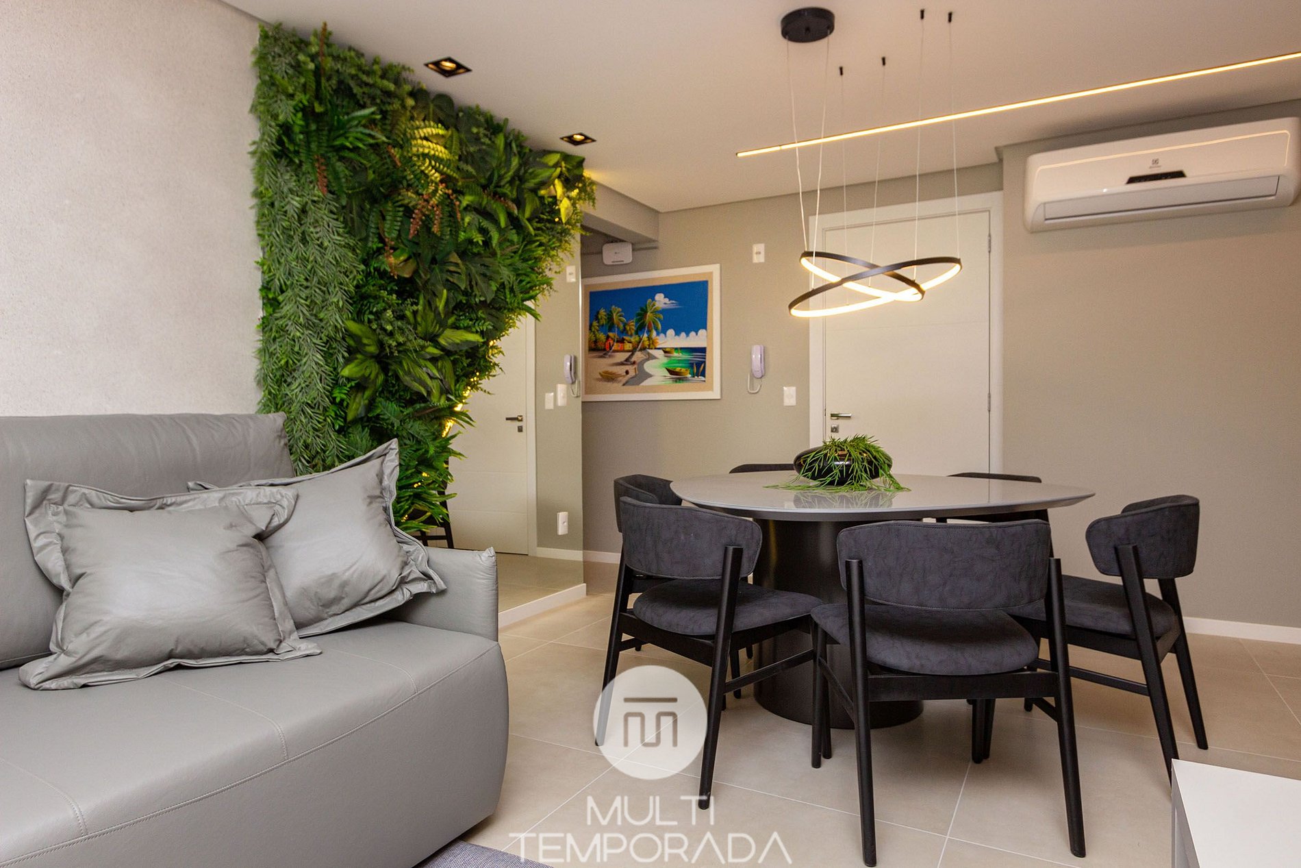 - Ambientes integrados y climatizados, que incluyen comedor, sala de estar y cocina totalmente equipada.