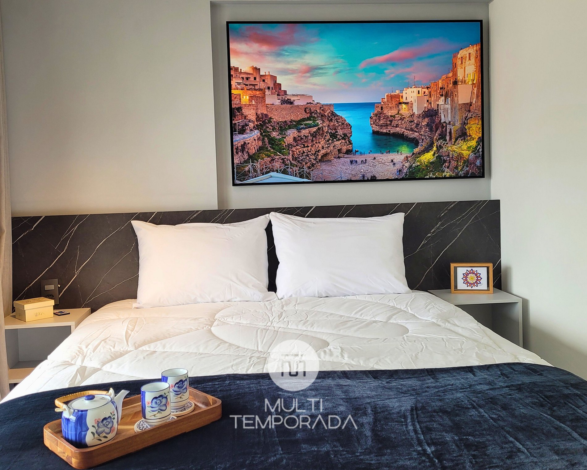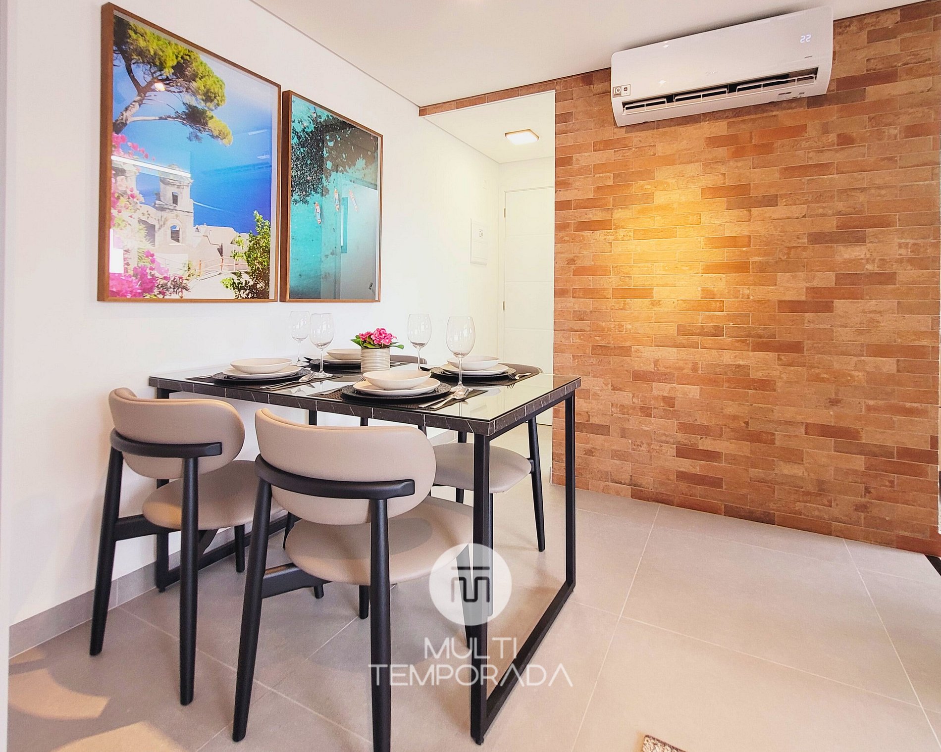 o apartamento tem uma disposição muito boa, espaçoso ma medida certa, com uma varanda incrível! cozinha super equipada, uma louça linda e muitos armários! a cama muito muito confortável, um sofá super aconchegante, o apartamento é todo decorado e cheio de detalhes! o prédio é perfeito, com uma piscina super gostosa e vista lindíssima, garagem espaçosa! vale muito a pena não só o apartamento em si, mas super pertinho da praia, com restaurantes ótimos por perto e padaria quase na esquina! recomendo demais!