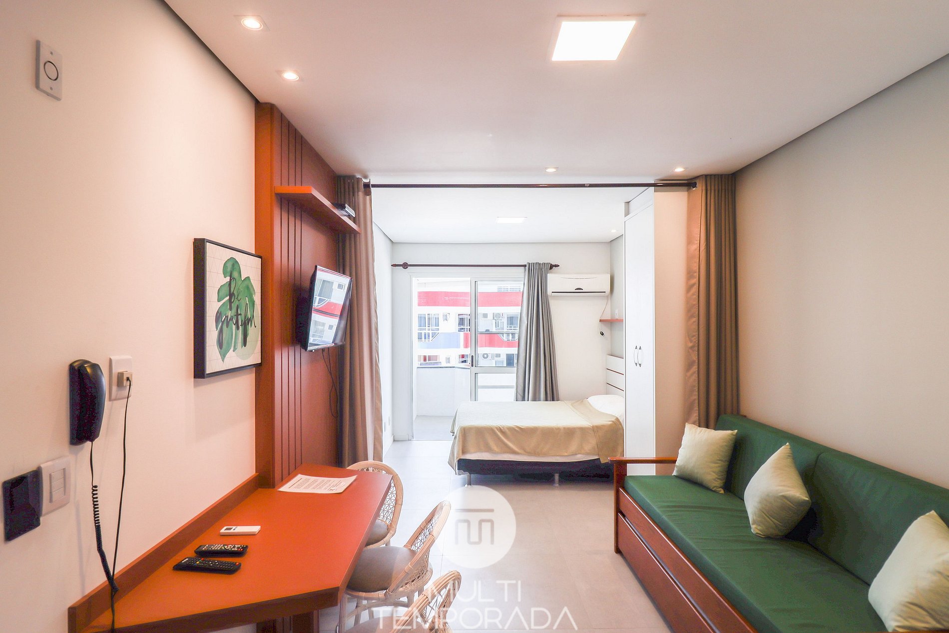 Apartamento de lujo - 01 dormitorio con cama doble, aire acondicionado, sala de estar con dos camas, SmartTV y cocina (nevera, microondas, horno, cocina eléctrica y elementos básicos de cocina), 1 baño y balcón.