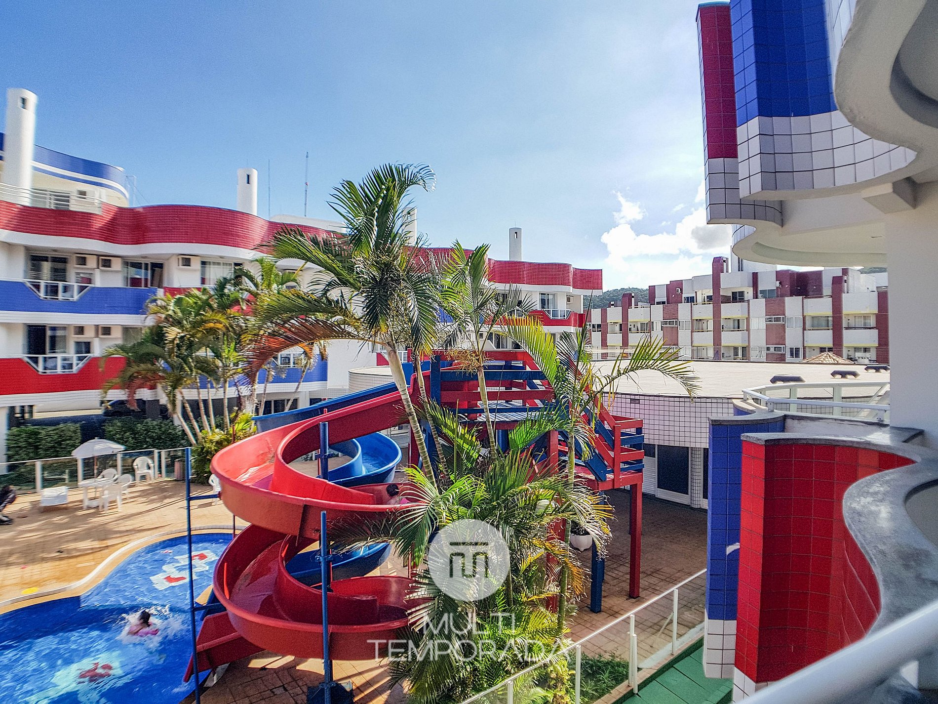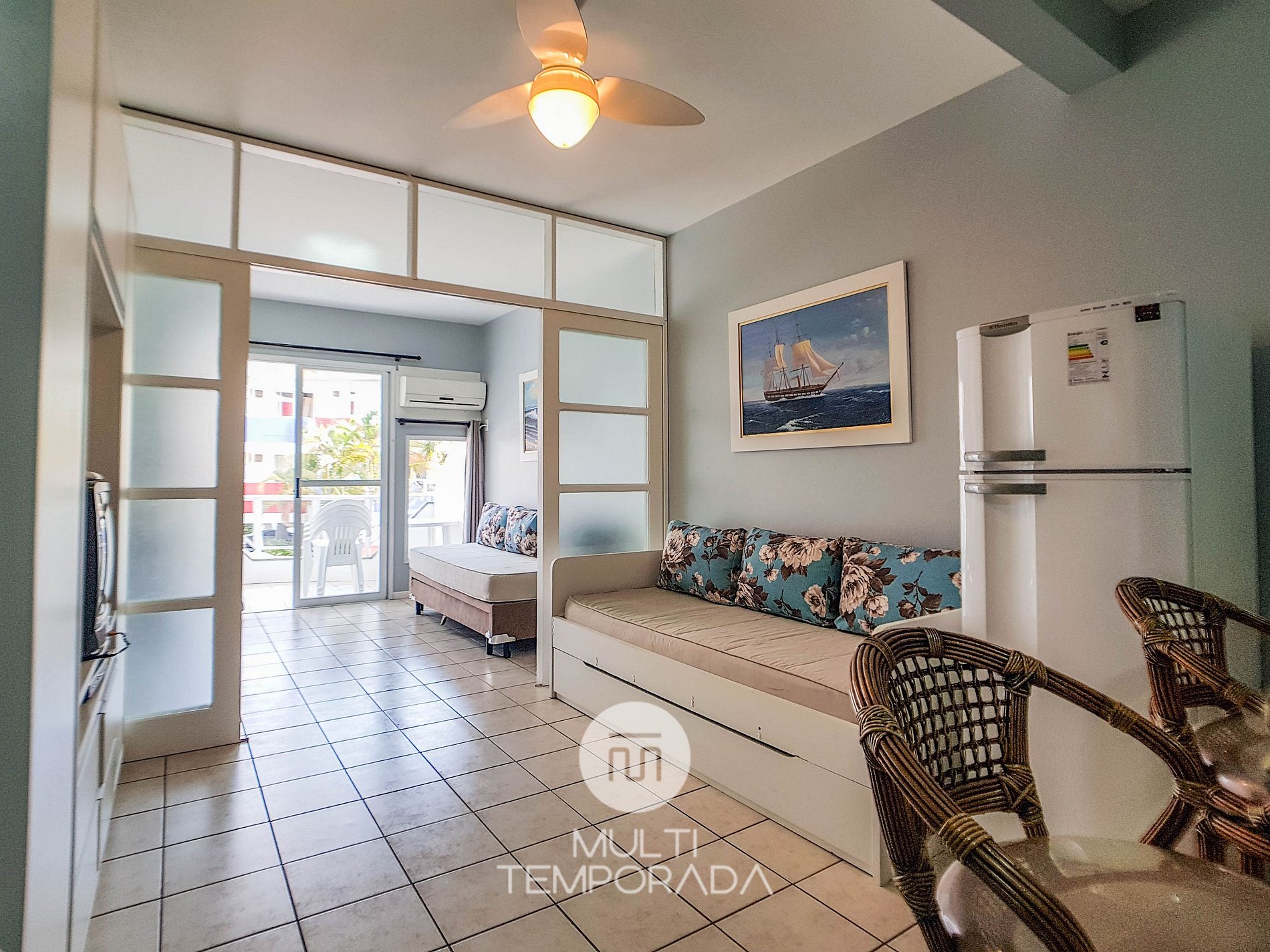 Apartamento Suite - 01 dormitorio con cama doble, aire acondicionado, sala de estar con 2 literas, TV y cocina combinada (nevera, microondas, cocina eléctrica y elementos básicos de cocina), 1 baño y balcón con barbacoa.