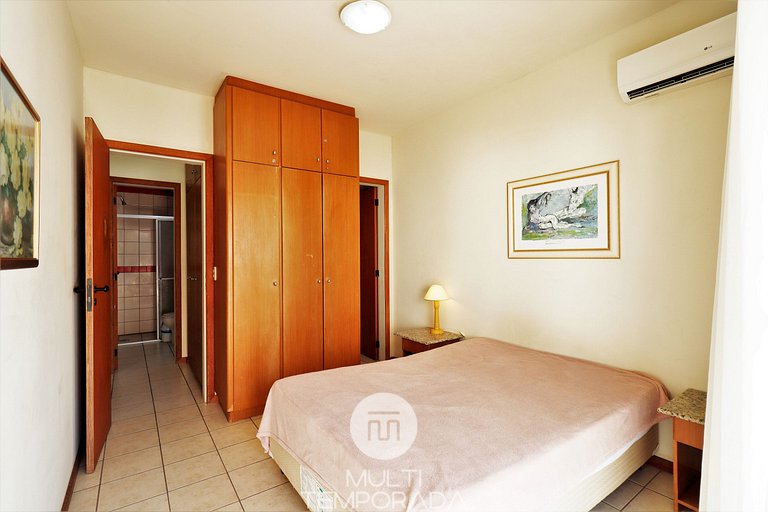 Apartamento Suite - 01 dormitorio con cama doble, aire acondicionado, sala de estar con dos ambientes, una cama bi-cama y una cama doble, TV y cocina (nevera, microondas, cocina eléctrica y elementos básicos de cocina), 1 baño y balcón con barbacoa.