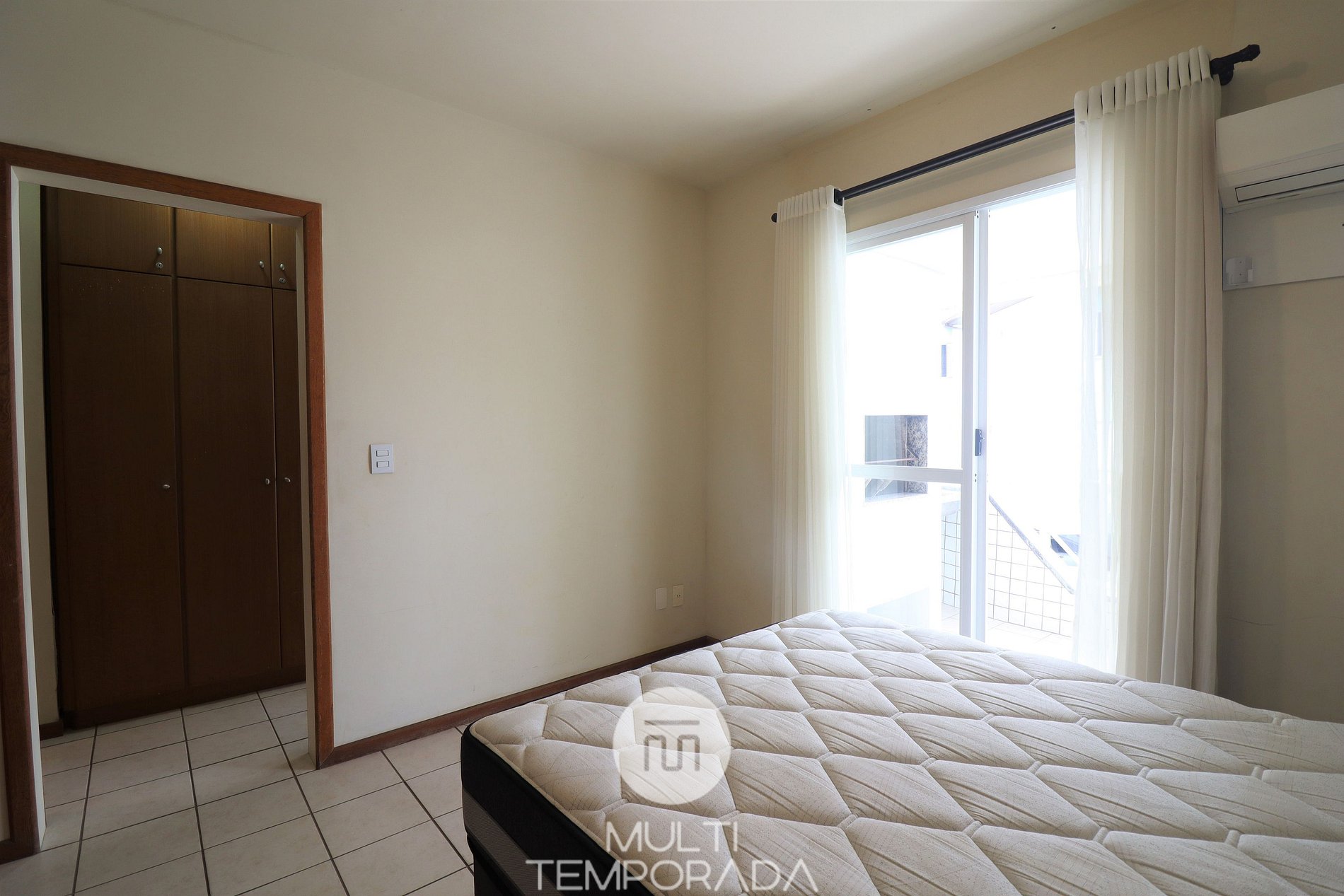 Apartamento Suite - 01 dormitorio con cama doble, aire acondicionado, sala de estar con dos ambientes, una cama bi-cama y una cama doble, TV y cocina (nevera, microondas, cocina eléctrica y elementos básicos de cocina), 1 baño y balcón con barbacoa.