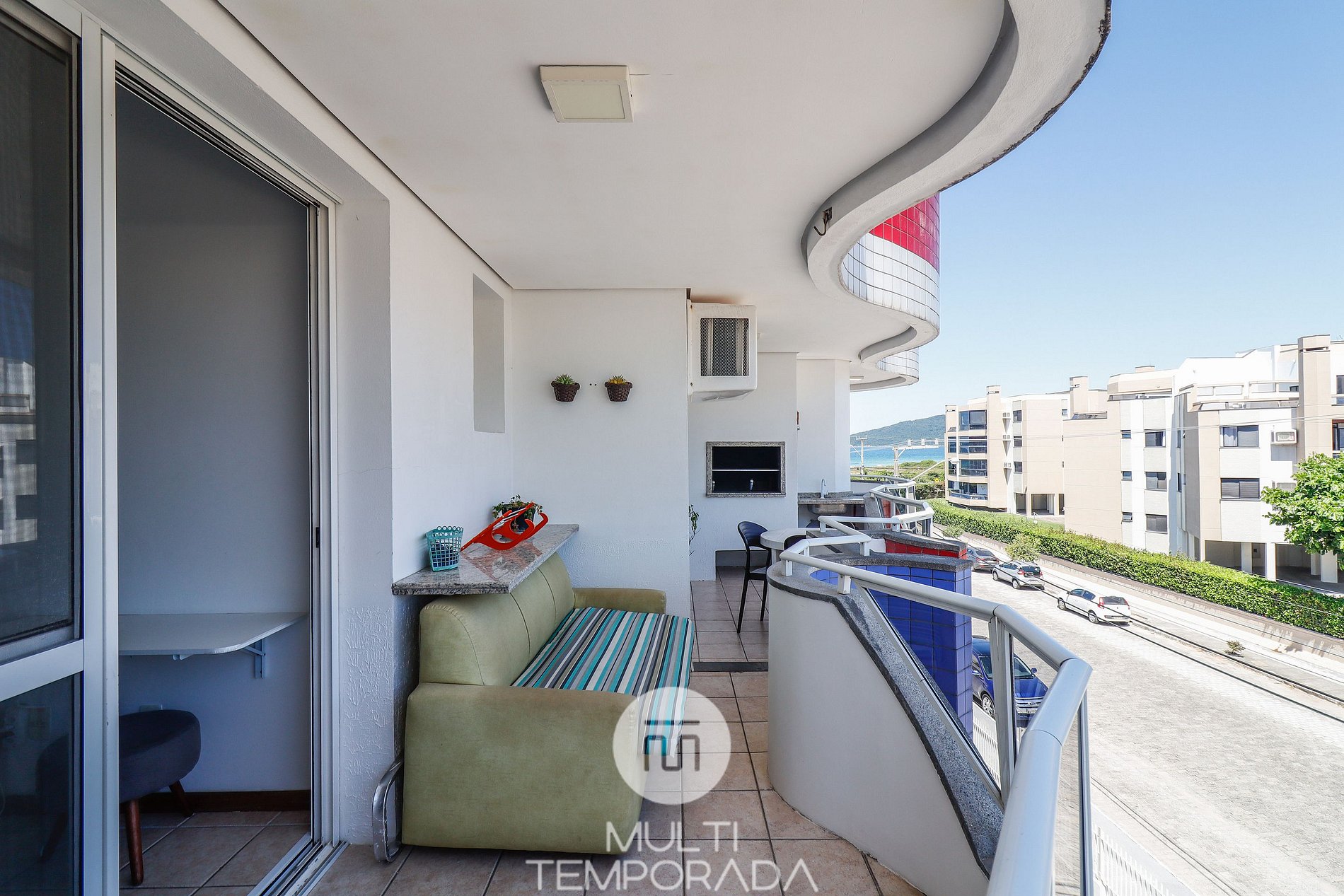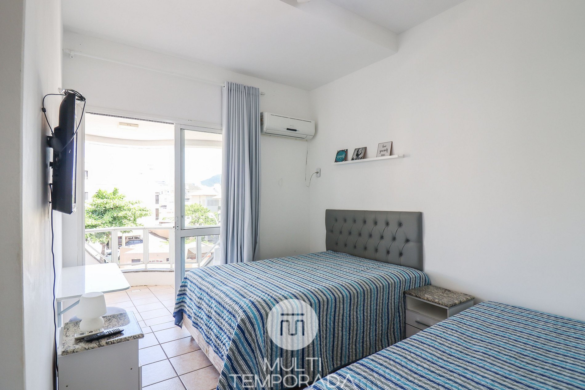Apartamento Suíte Master - 1 dormitorio suite, 1 dormitorio con cama de solteiro todos con aire acondicionado, 2 salas con sofá cama cada uma, cocina americana completa, 1 banheiro y sacada con churrasqueira