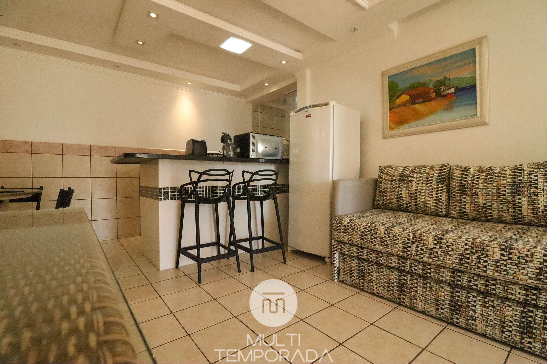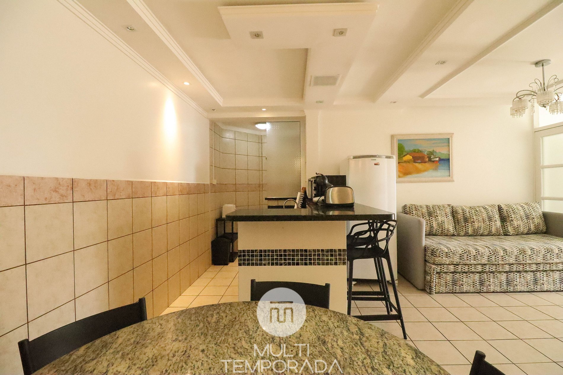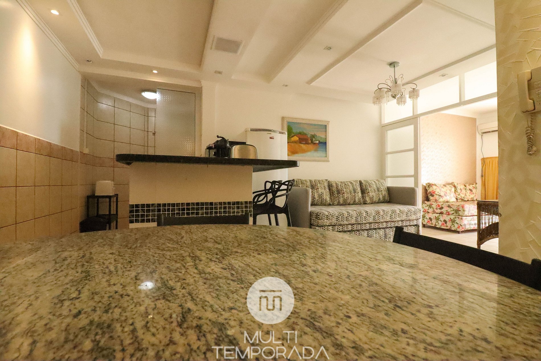 Apartamento Master Suite - 02 habitaciones, una con cama matrimonial y la otra con cama cucheta, aire acondicionado, sala con dos sofás cama, TV y cocina (Refrigerador, microondas y anafe eléctrico, menaje básico de cocina), 2 baños y balcón . Dispone de cafetera en cápsulas (cápsulas no incluidas) y wi-fi.