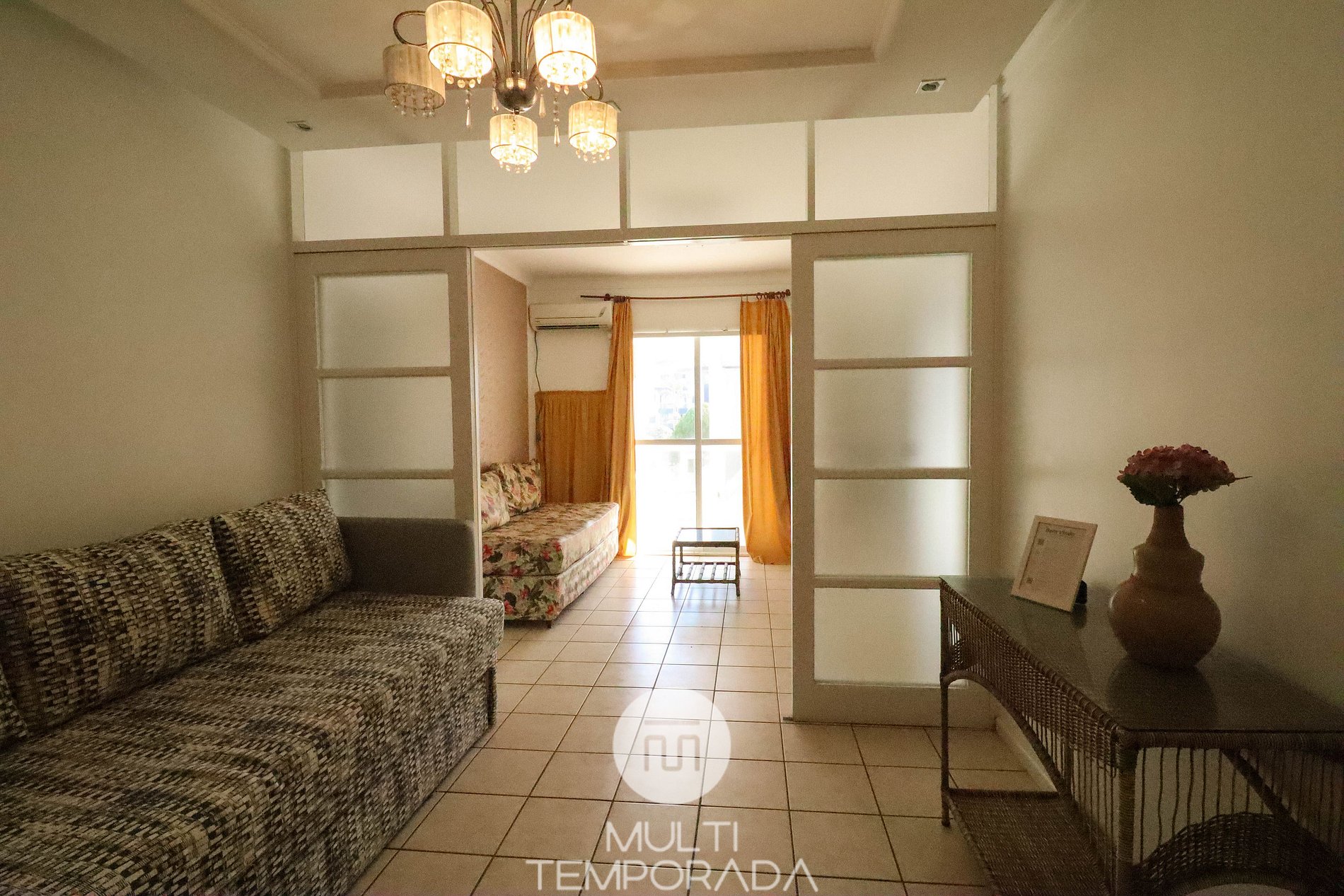 El apartamento tiene capacidad para 8 personas. Equipado con 01 cama doble, 02 camas individuales, 01 cama auxiliar y 02 sofás cama. No trabajamos con colchones extra.