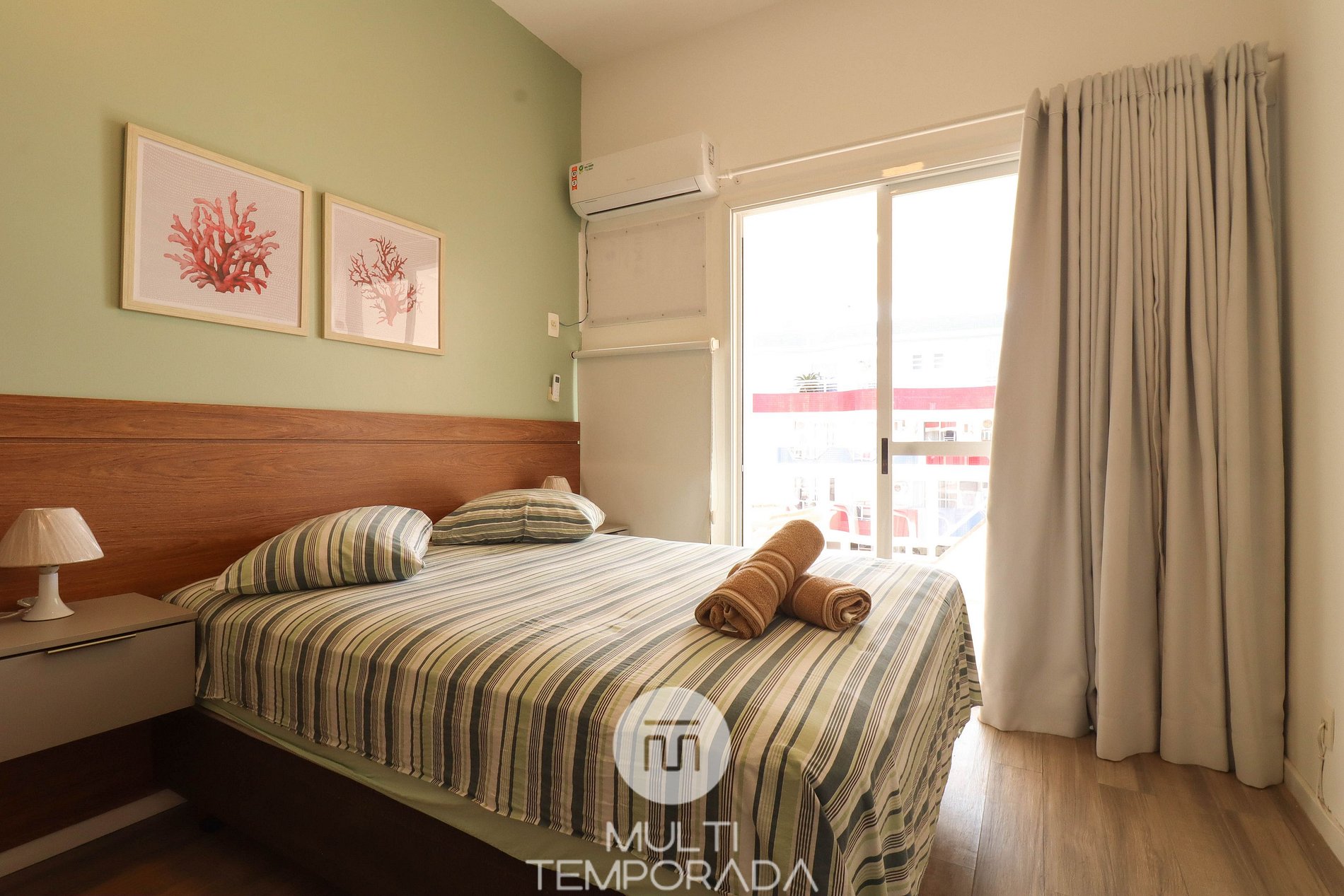 Apartamento Super Lujo - 01 dormitorio con cama doble, aire acondicionado, sala de estar con dos camas, TV y cocina combinada (minibar, microondas, cocina eléctrica y elementos básicos de cocina), 1 baño y balcón con barbacoa.