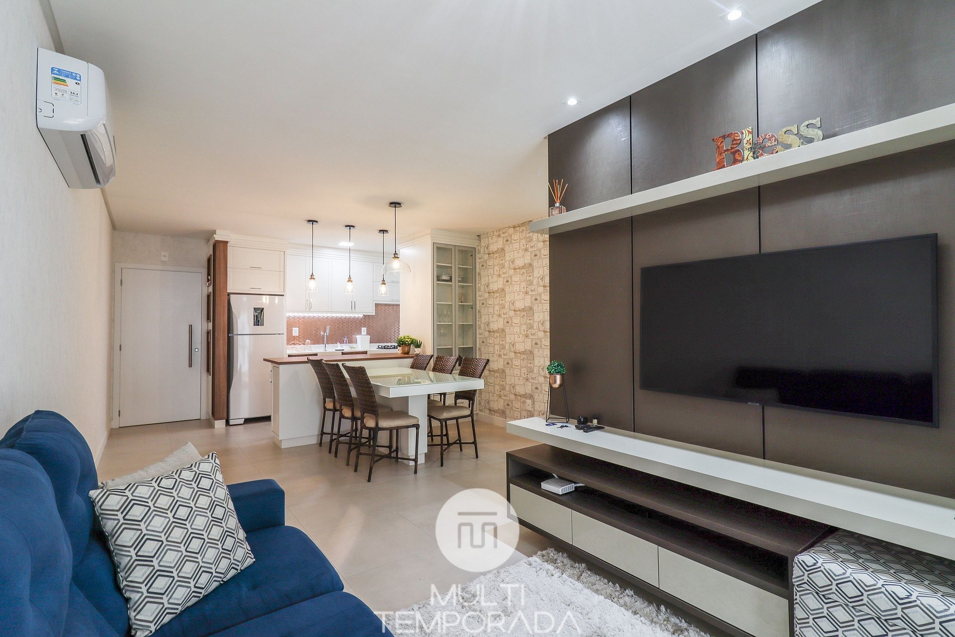 O apartamento é lindo, moderno e agradável. Todo planejado com muito bom gosto. Ambiente familiar e super aconchegante. Cozinha e lavanderia equipadas. Sistema de aquecimento a gás. Banheiros impecáveis. Sacada com vista para a rua e piscina, e também para a paisagem, muito legal. Ambiente totalmente climatizado, excelente. Não faltou nada! No entanto, um ponto de melhoria: as camas. O condomínio é limpo e bonito, com ducha externa, piscina e salão de festas, além do serviço de zeladoria e portaria, que nos recebeu muito bem e ajudou quando preciso. Quanto a imobiliária (que fica há poucos metros): mesma coisa! Atendimento cordial, rápido, claro e com boa comunicação. Já conhecíamos a ilha, a região e a praia, mas foi como uma primeira vez. 100% realizado e satisfeito! Recomendadíssimo!