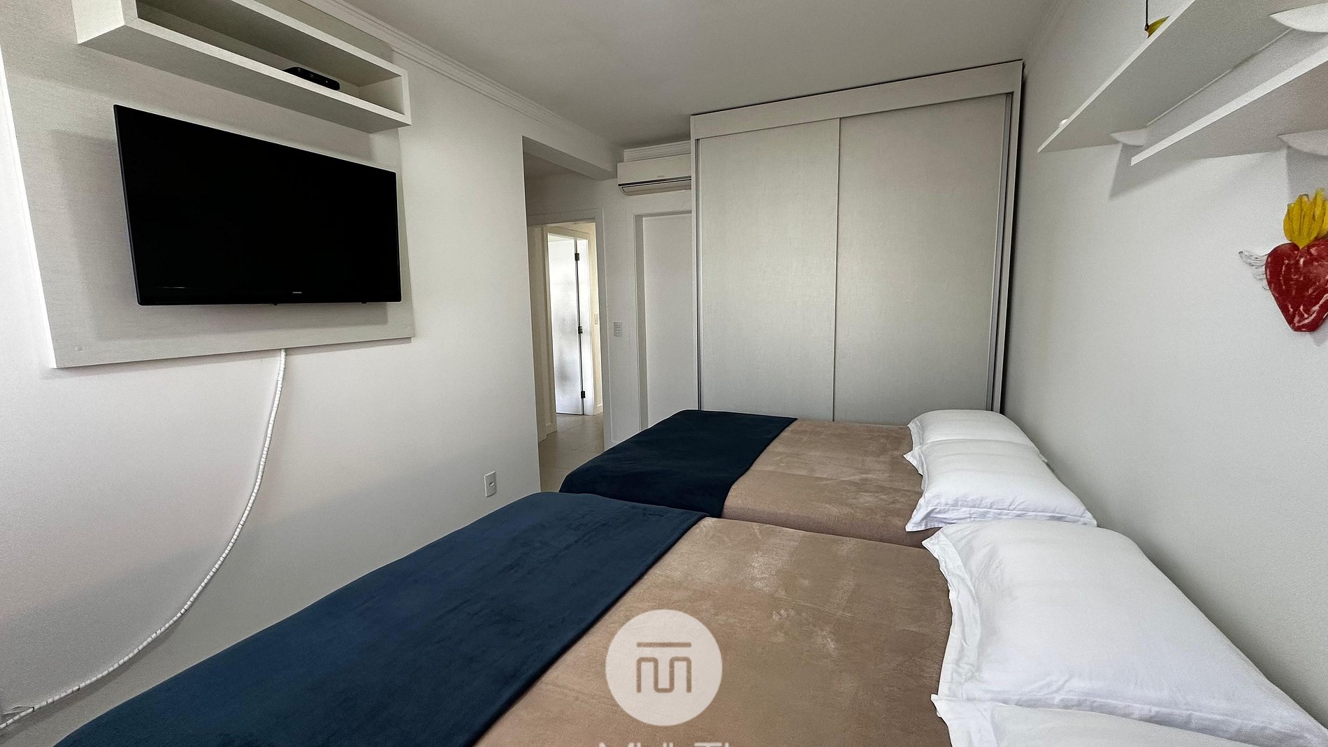 Espectacular apartamento, compuesto por 02 suites, una suite con dos camas matrimoniales y otra suite con cama queen size, todas las habitaciones con aire acondicionado y televisión, baño de visitas, amplio balcón cerrado con asador de carbón y fregadero, cocina totalmente equipada. Dispone de dos plazas de aparcamiento. Impecable departamento con muebles de diseño a medida.