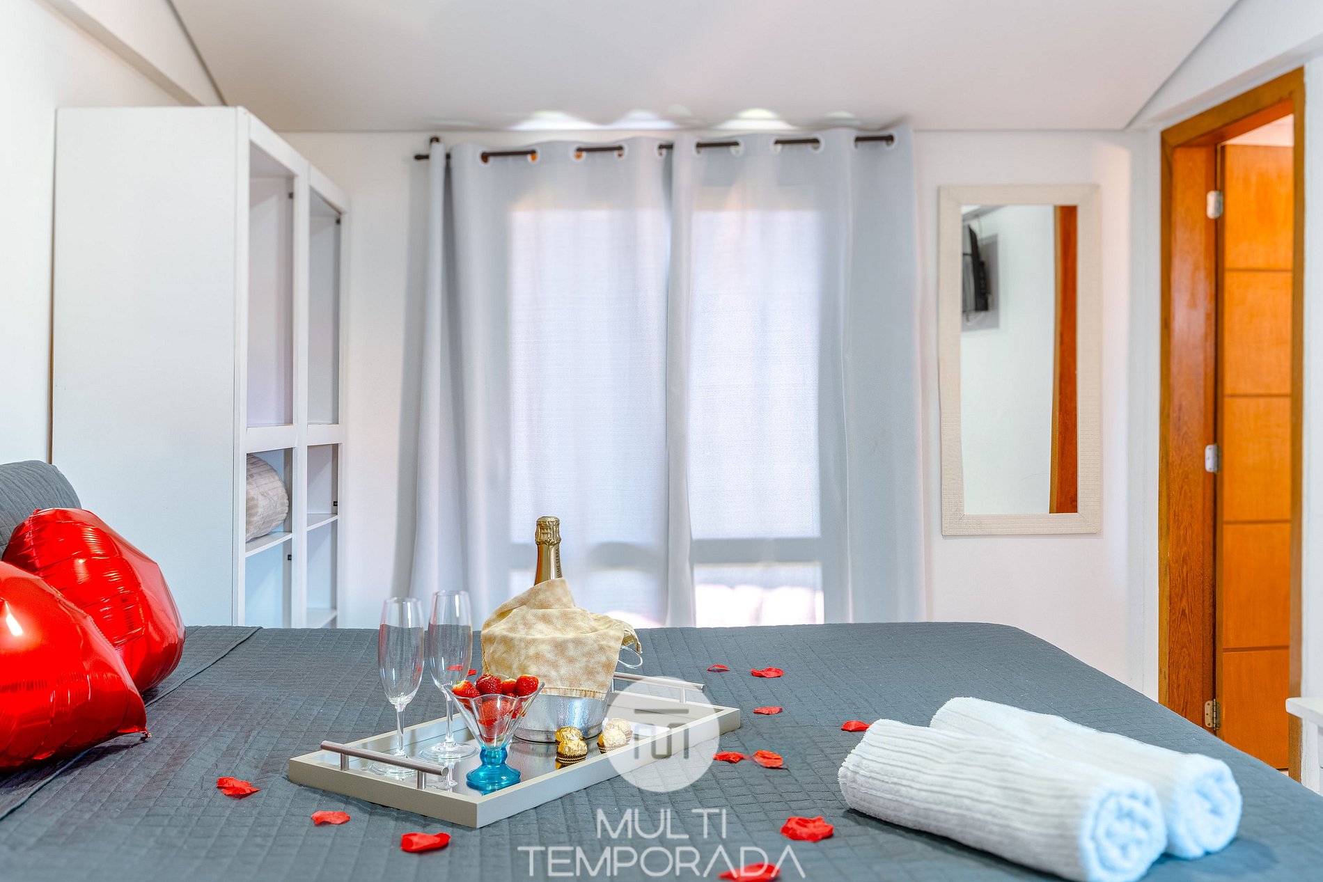 A Suíte Design, localizada em primeiro piso, possui 15m². Conta com cama Queen-Size, TV Smart 32'', armário, garantindo maior praticidade e bem-estar aos hóspedes;
