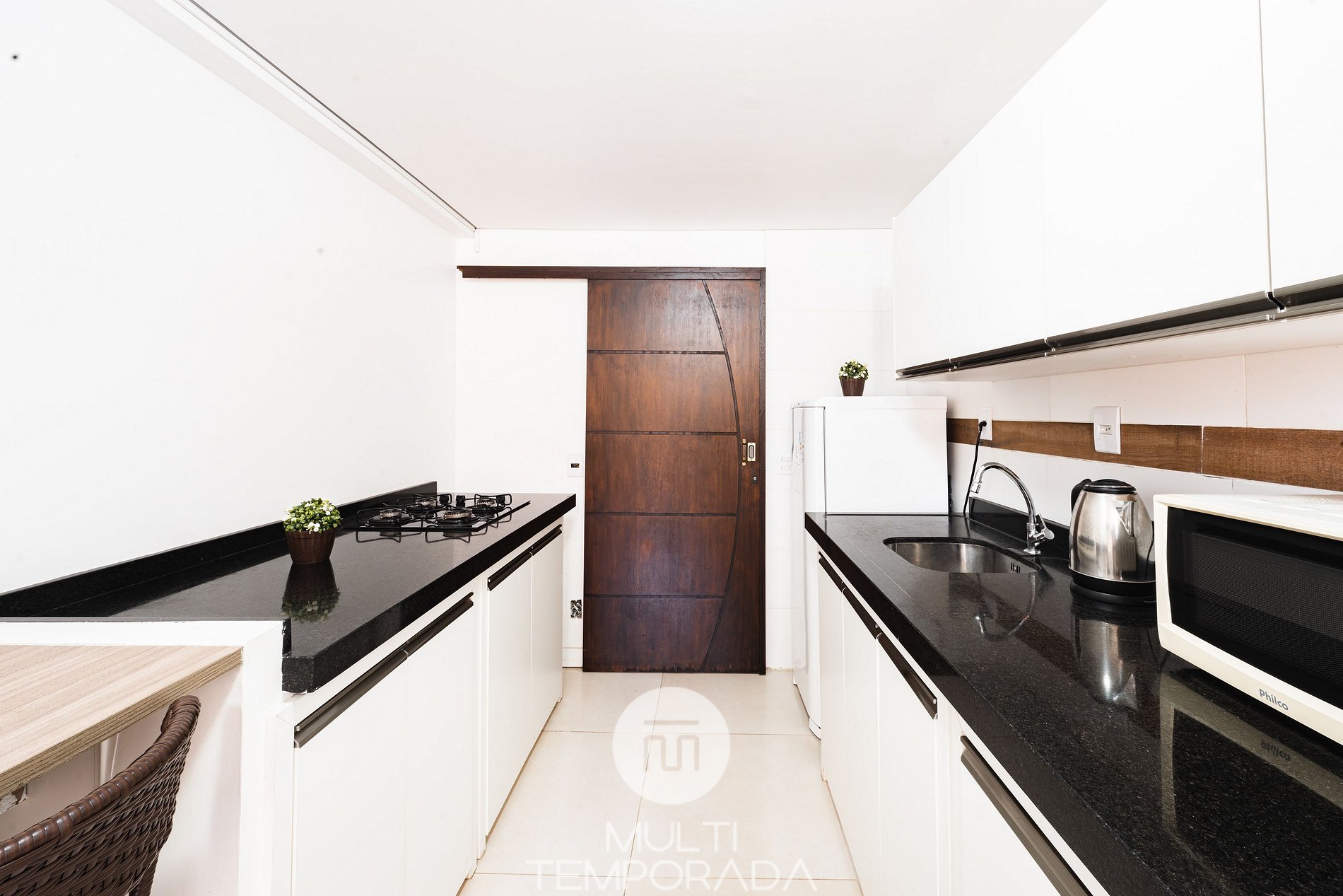 Cozinha completa: fogão cooktop, geladeira, microondas, chaleira elétrica, louças e talheres, taças e utensílios básicos de cozinha;