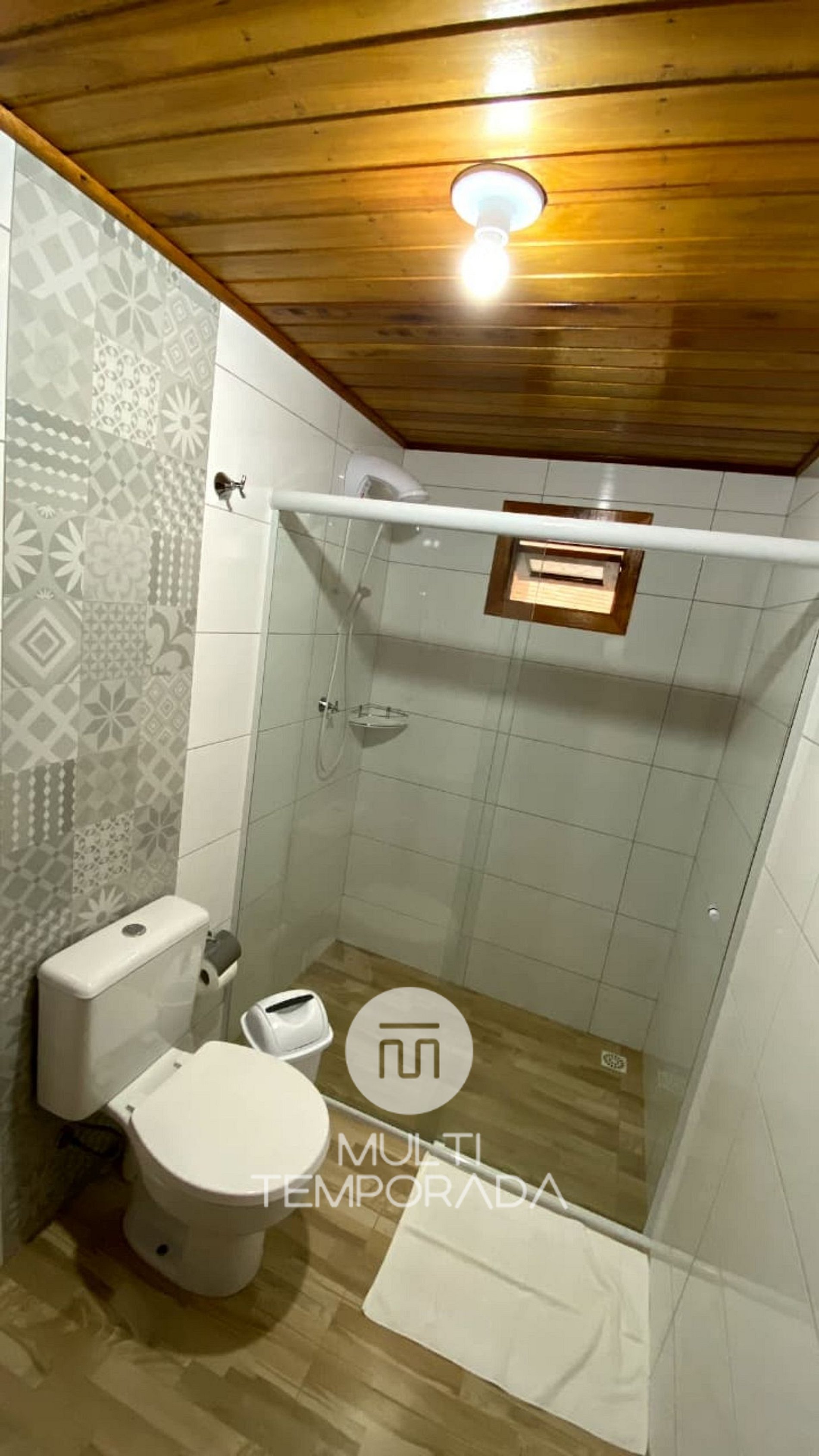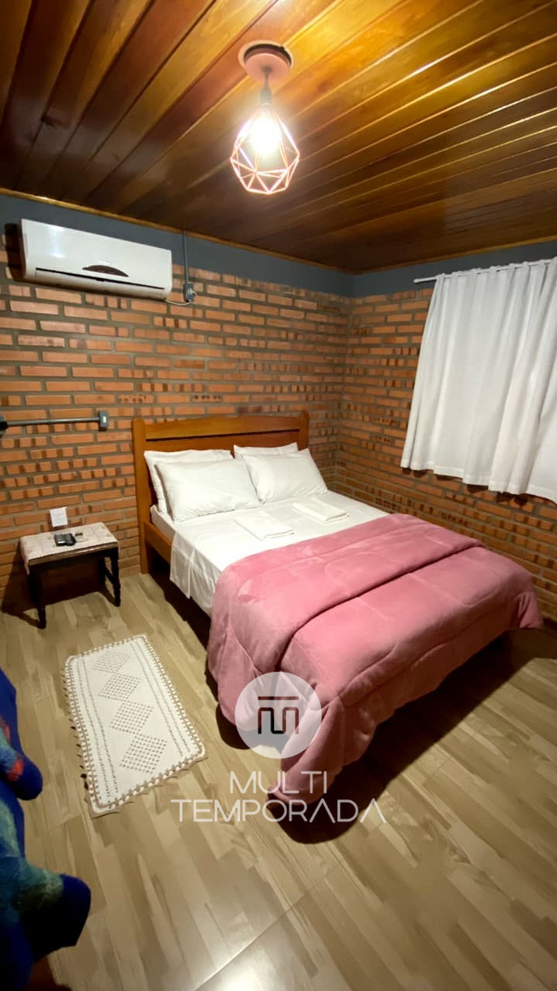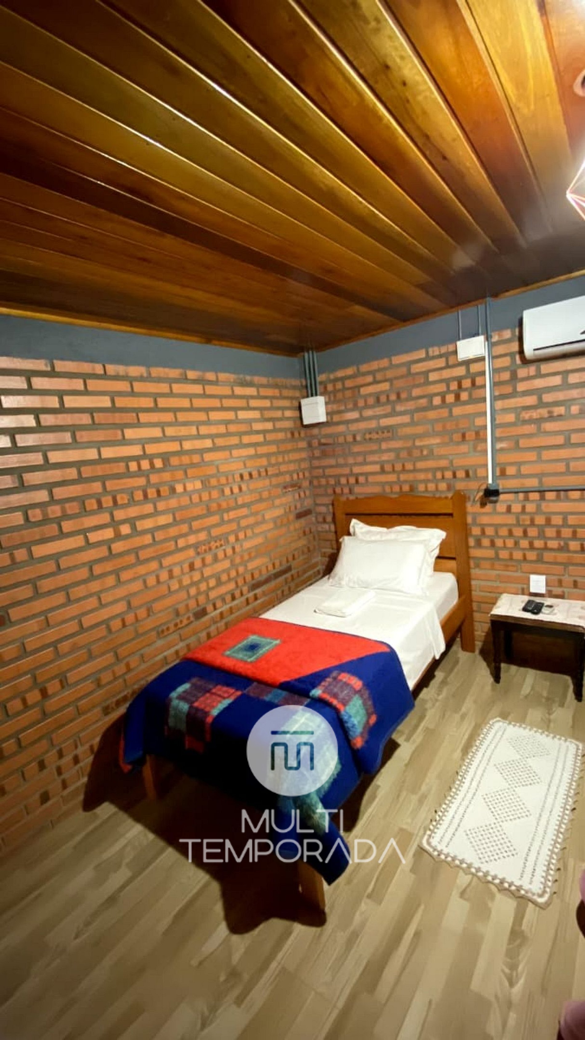 Com capacidade para até 3 pessoas, o Chalé 1 é ideal para casais, famílias pequenas ou amigos. Possui cerca de 48m² de área interna e está distribuído da seguinte forma:
