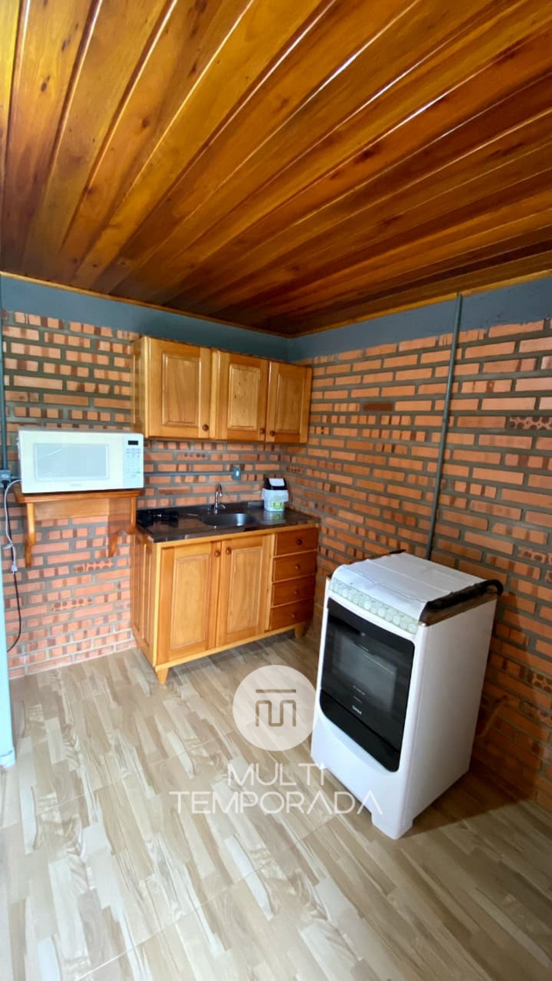 Nos dias frios da serra, o conforto é garantido com ar-condicionado quente e frio. Já a cozinha completa — equipada com fogão, geladeira, forno, micro-ondas, louças e talheres — oferece toda a praticidade necessária para preparar refeições no próprio chalé.