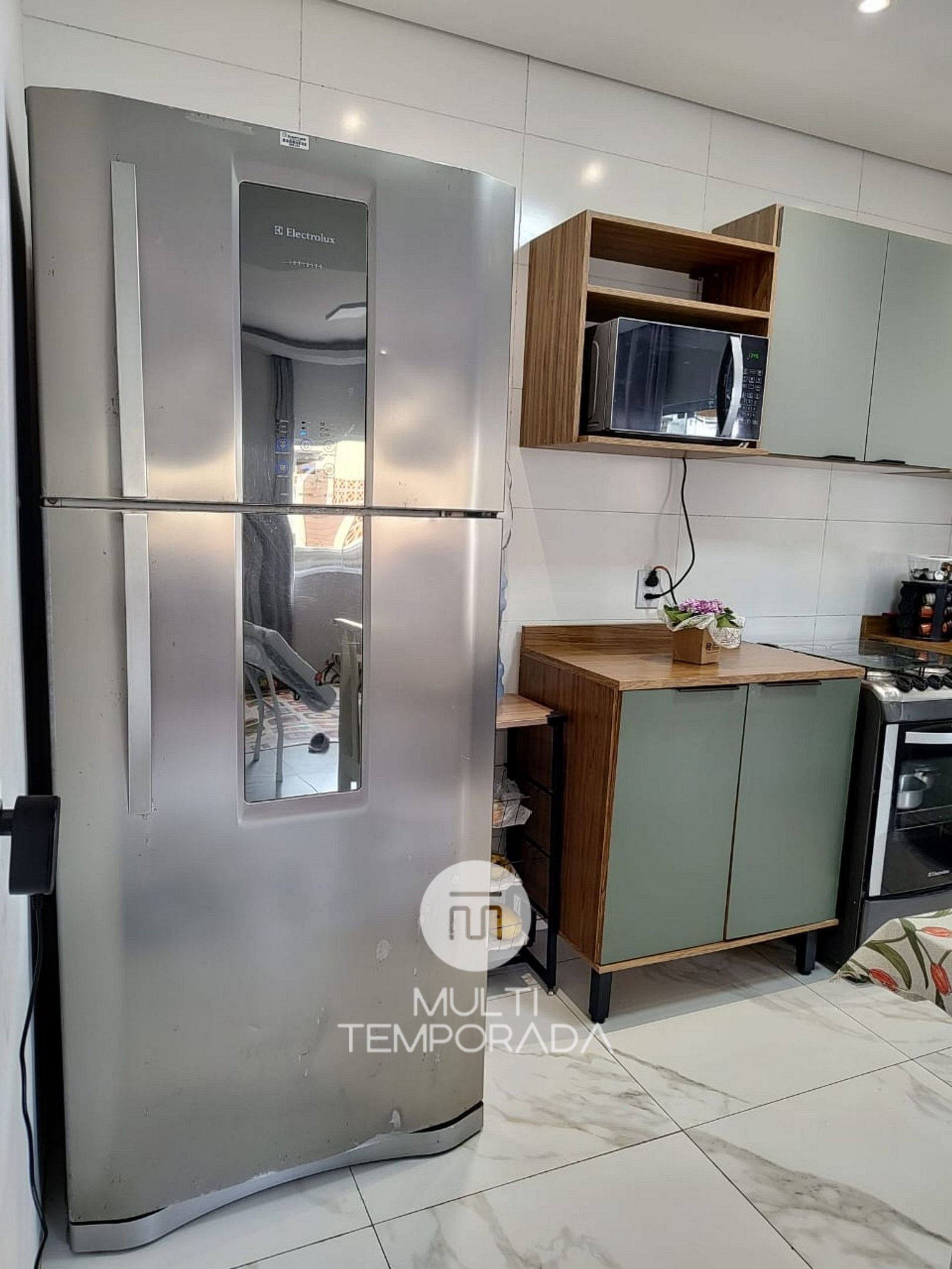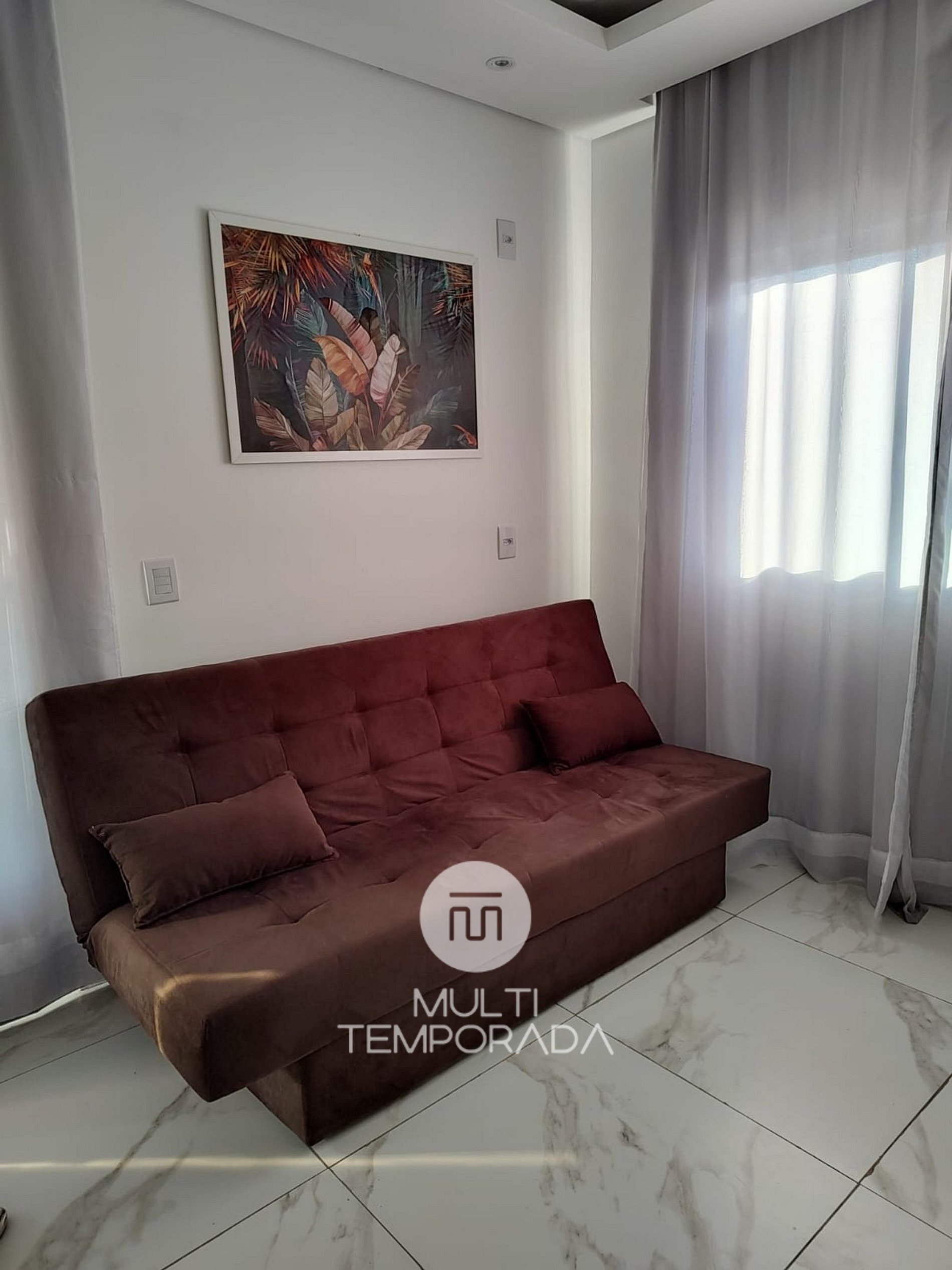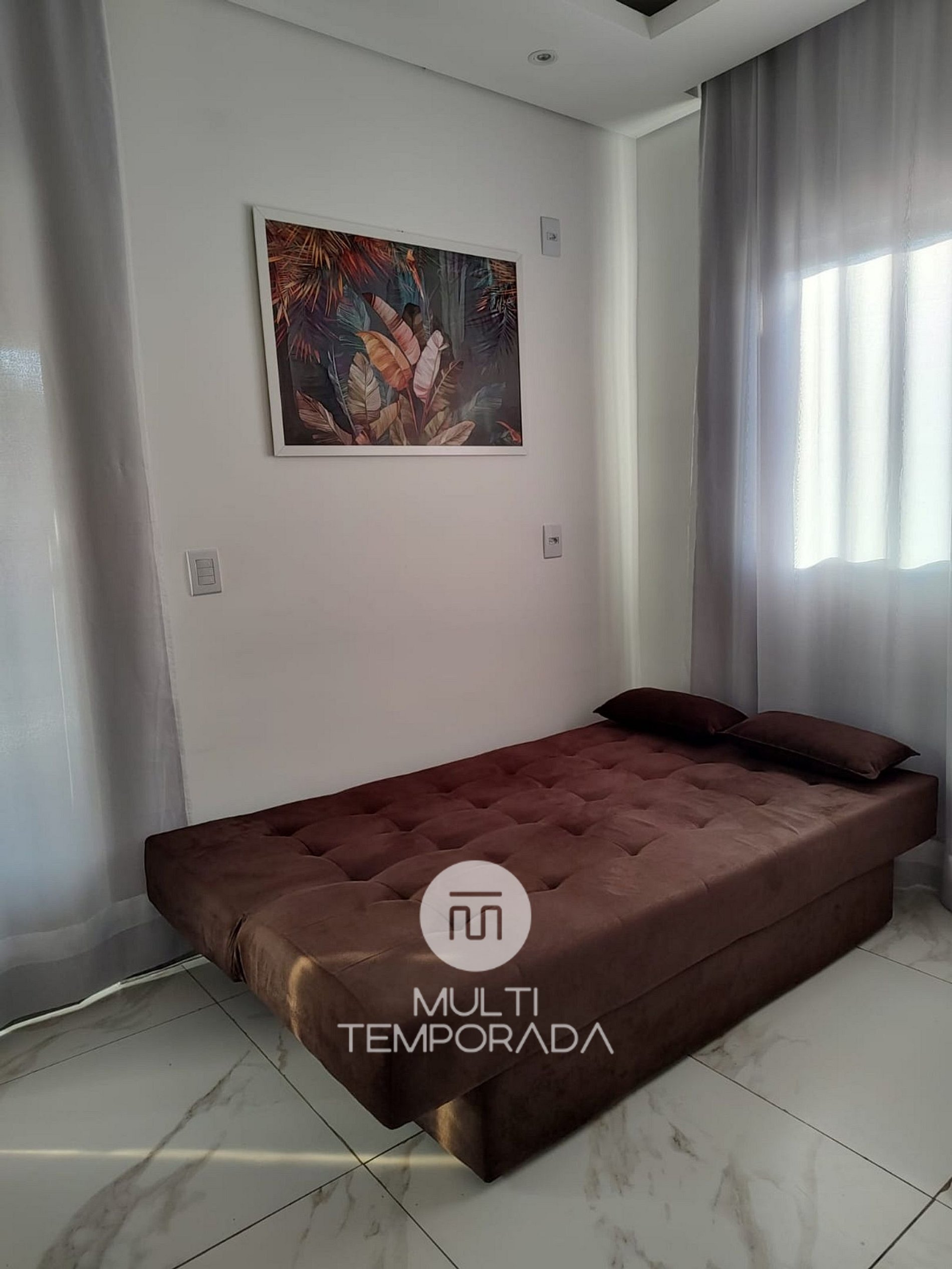 A área social integra uma sala aconchegante, perfeita para descansar após um dia de passeios, e uma cozinha totalmente equipada com geladeira, fogão com forno, micro-ondas, airfryer, cafeteira, chaleira elétrica, liquidificador, louças e talheres, oferecendo toda a praticidade para preparar refeições no próprio espaço.