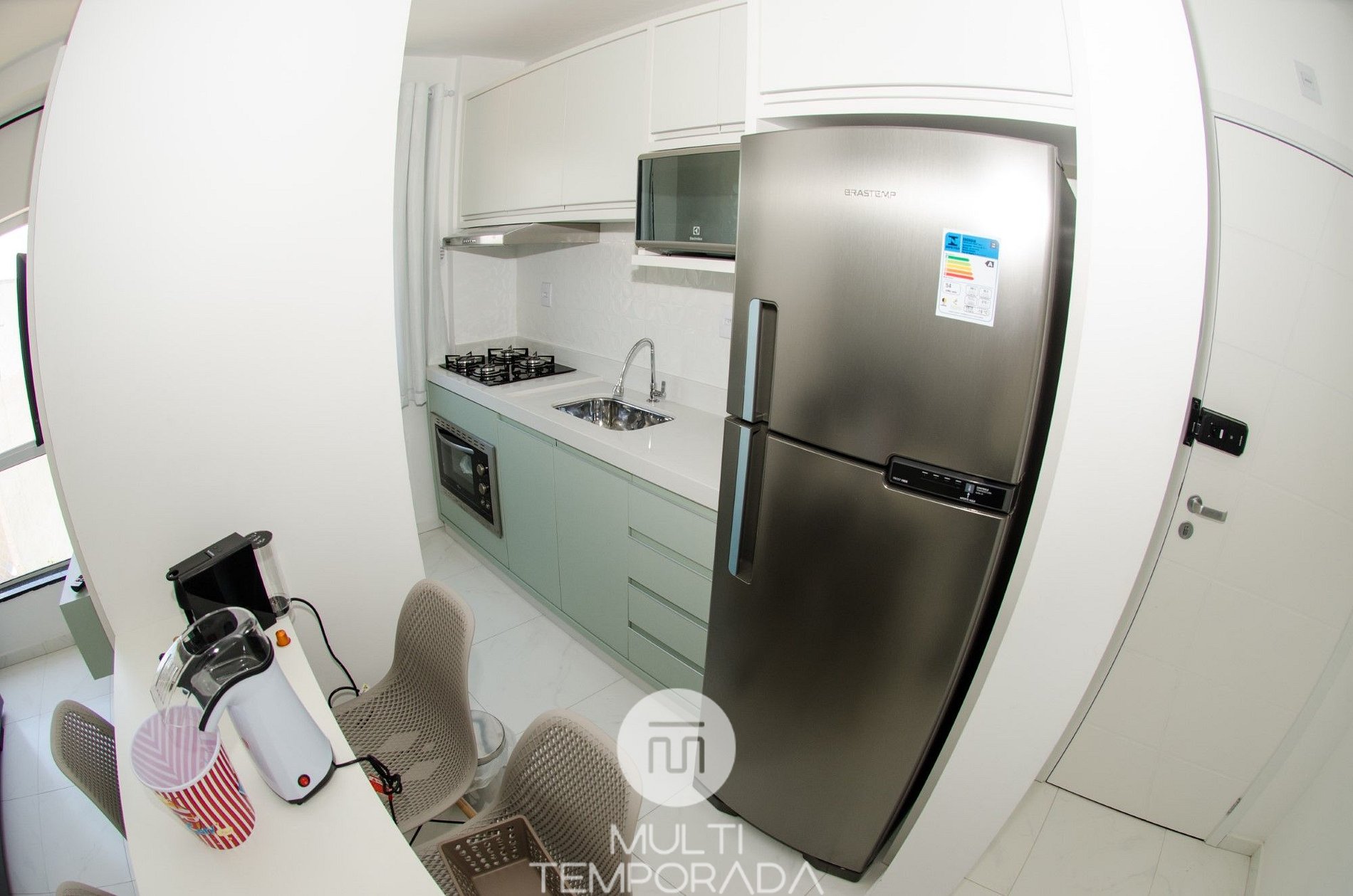 O apartamento oferece vista para o Beto Carrero World, dois dormitórios climatizados, cozinha e sala integrados e banheiro social. A cozinha é toda planejada e equipada com fogão, geladeira, forno elétrico, microondas, liquidificador, coifa, pipoqueira, máquina de café Nespresso e todos utensílios necessários para fazer uma boa refeição. A sala de estar possui um sofá e TV Smart 40'';