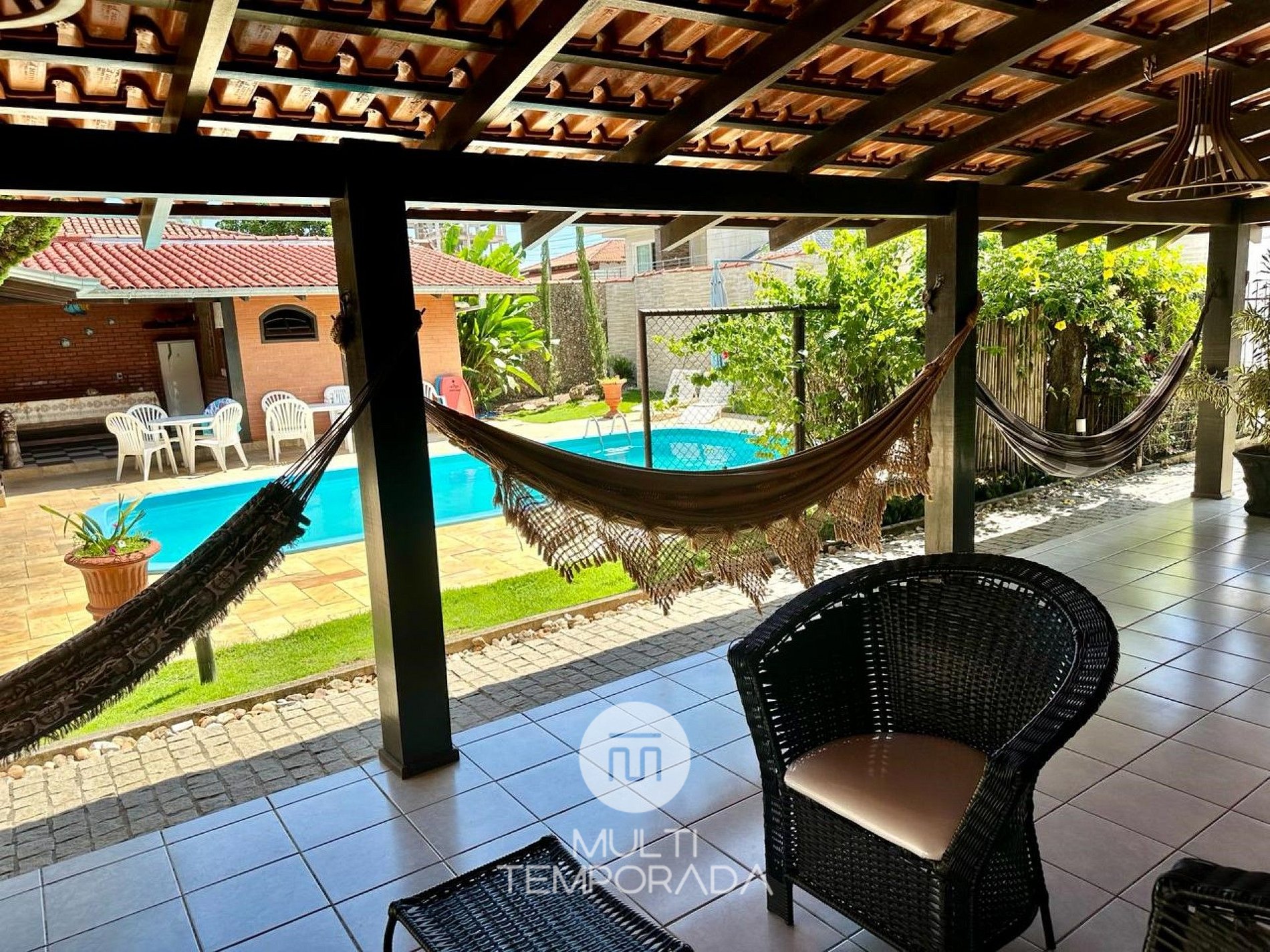 A propriedade possui uma área construída de 430 metros quadrados, estacionamento para 5 carros (2 vagas cobertas), piscina privativa, área gourmet com churrasqueira, fogão, forno, geladeira com freezer e mesa ampla para 10 pessoas.