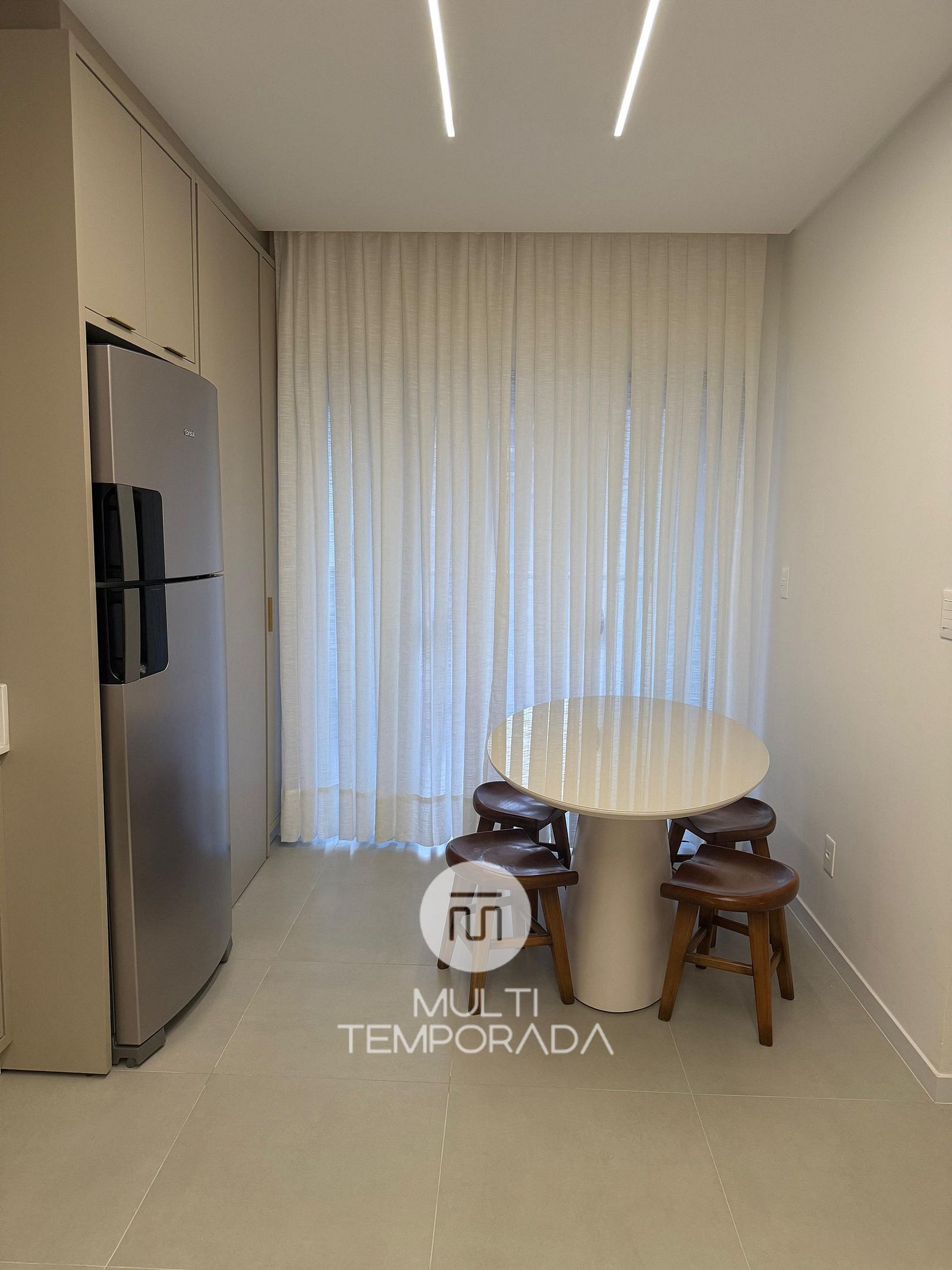 A área social é integrada, proporcionando uma atmosfera leve e acolhedora para reunir todos em um único ambiente. A sala climatizada com ar condicionado é perfeita para relaxar depois de um dia de sol, e a varanda com churrasqueira e vista para o mar convida a apreciar o pôr do sol em boa companhia. O apartamento também oferece Wi-Fi de alta velocidade (350 Mb), garantindo praticidade e conexão durante toda a estadia.