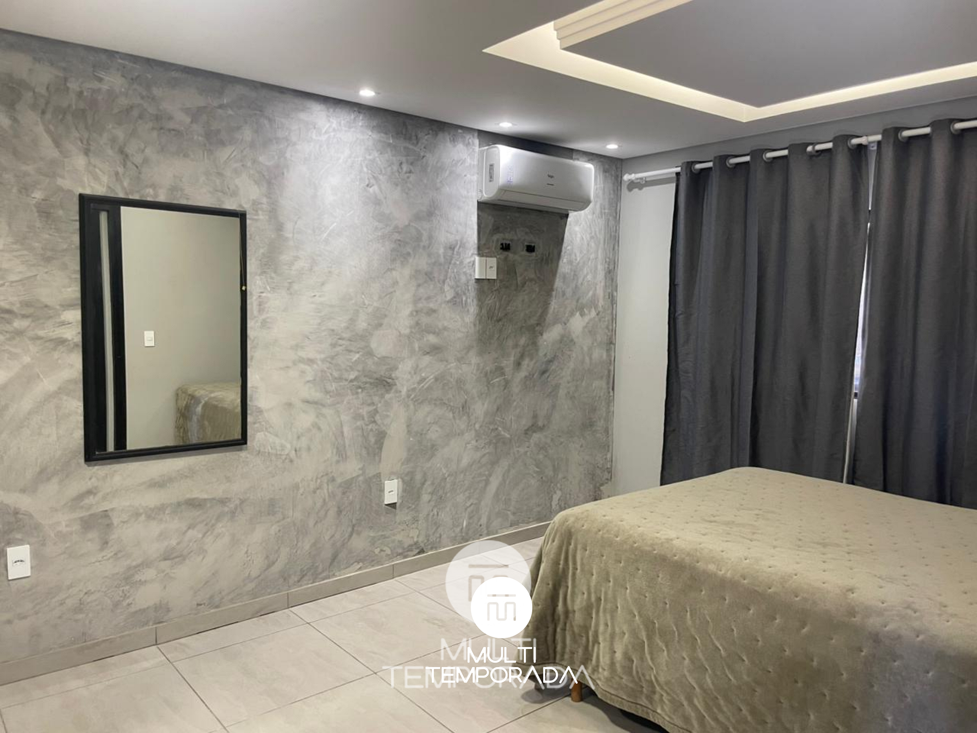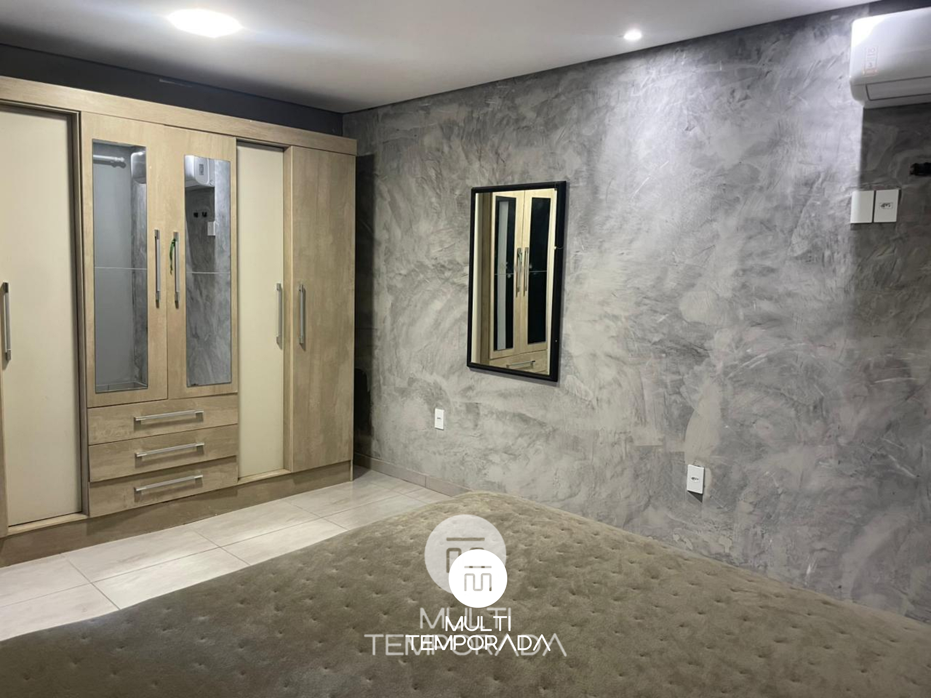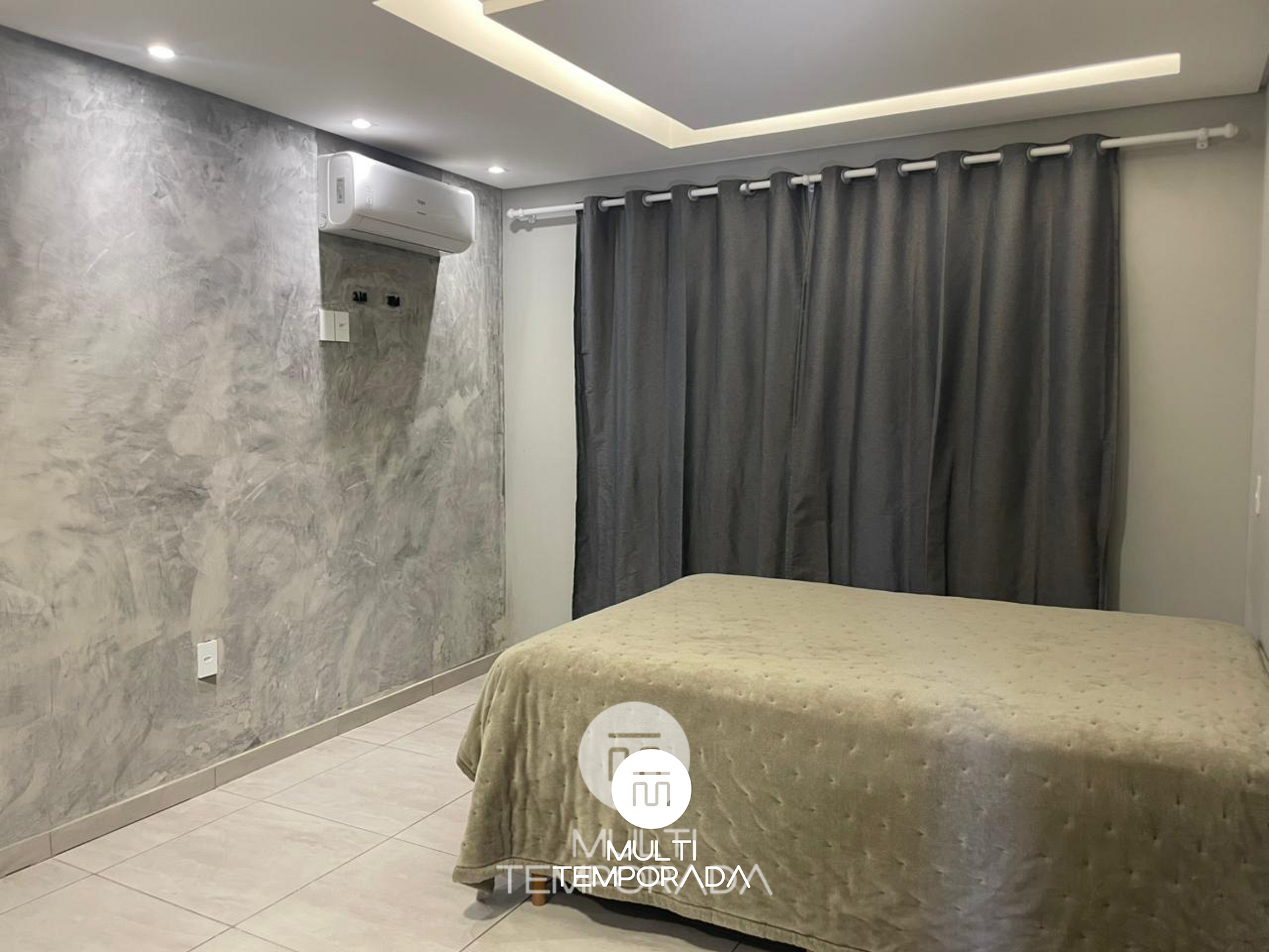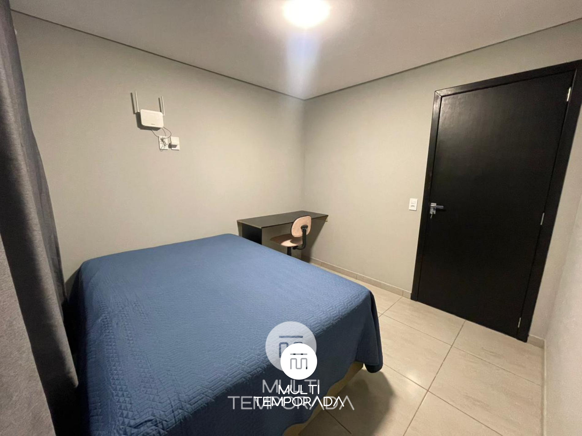 Dormitório 1: Cama de casal + Ar-condicionado (frio)