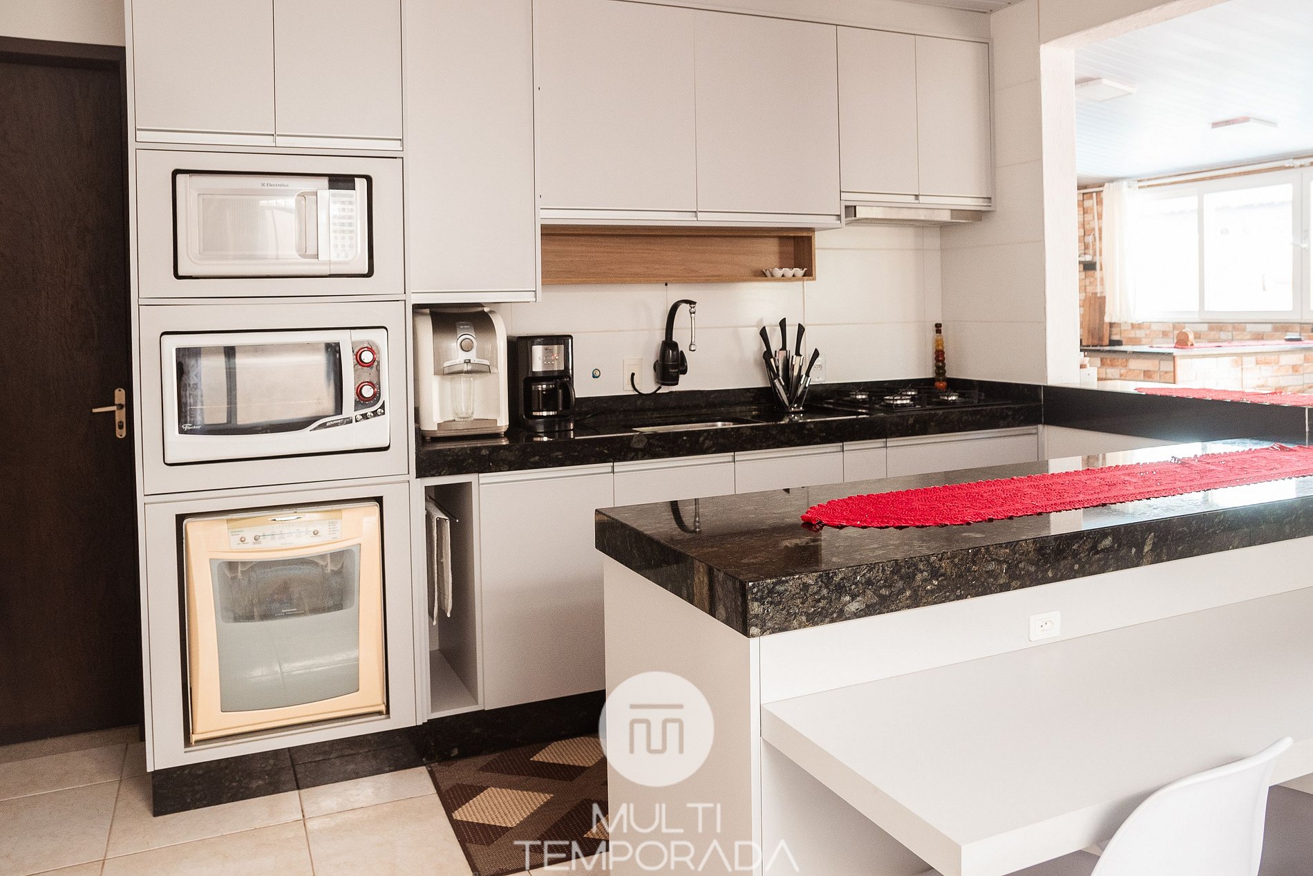 Cozinha: completa e equipada com geladeira, fogão, forno, microondas, cafeteira, purificador de água, lava-louças, utensílios de cozinha e eletroportáteis de qualidade. Tudo isso para o seu melhor conforto em um espaço que integra proximidade da Praia e qualidade na sua hospedagem.