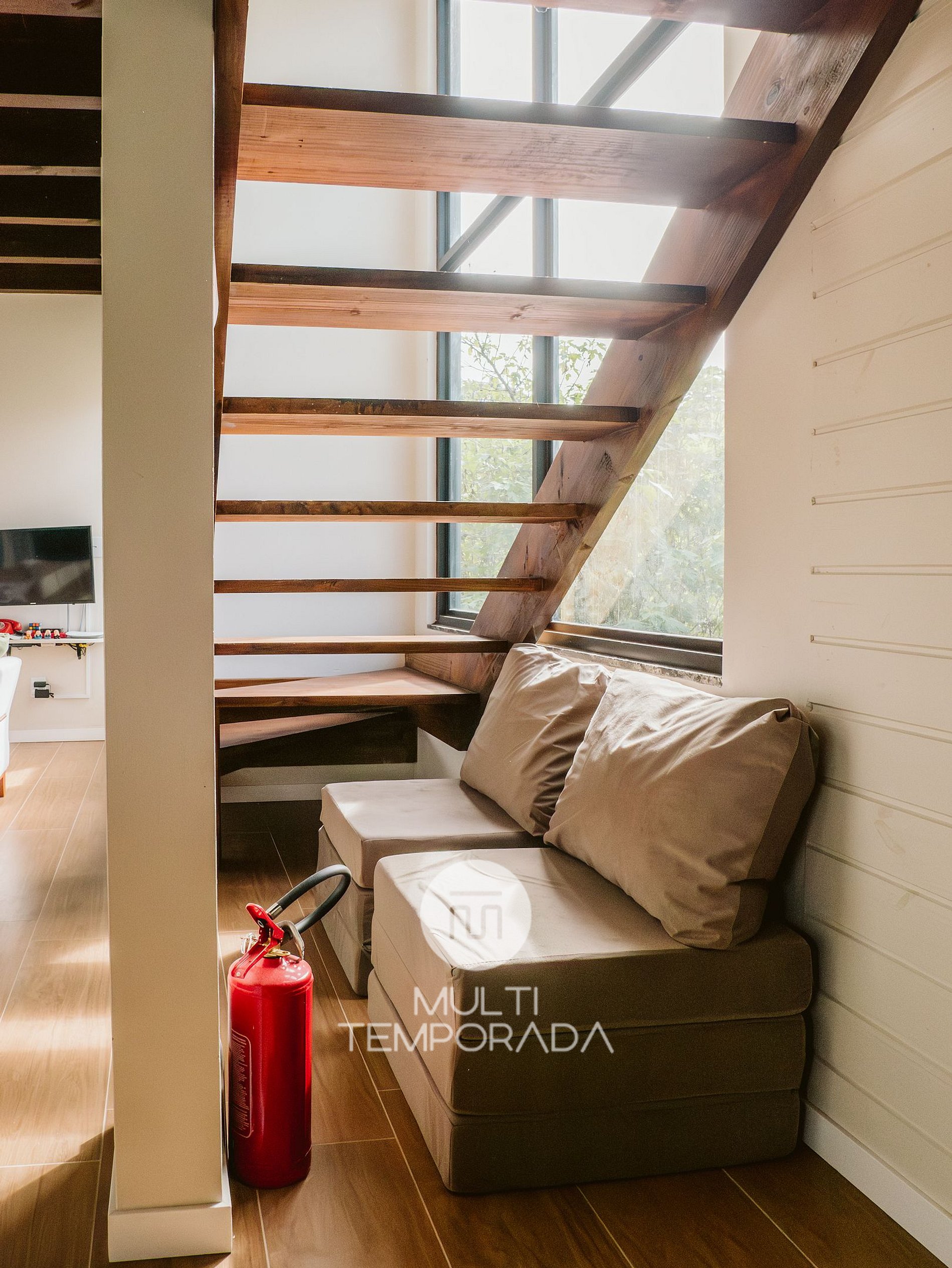 - Segurança: A casa possui alarmes de fumaça em cada andar, extintor de incêndio e kit de primeiros socorros. Temos uma câmera de segurança no terreno. Não se preocupe, ela não pode ver o interior da casa;