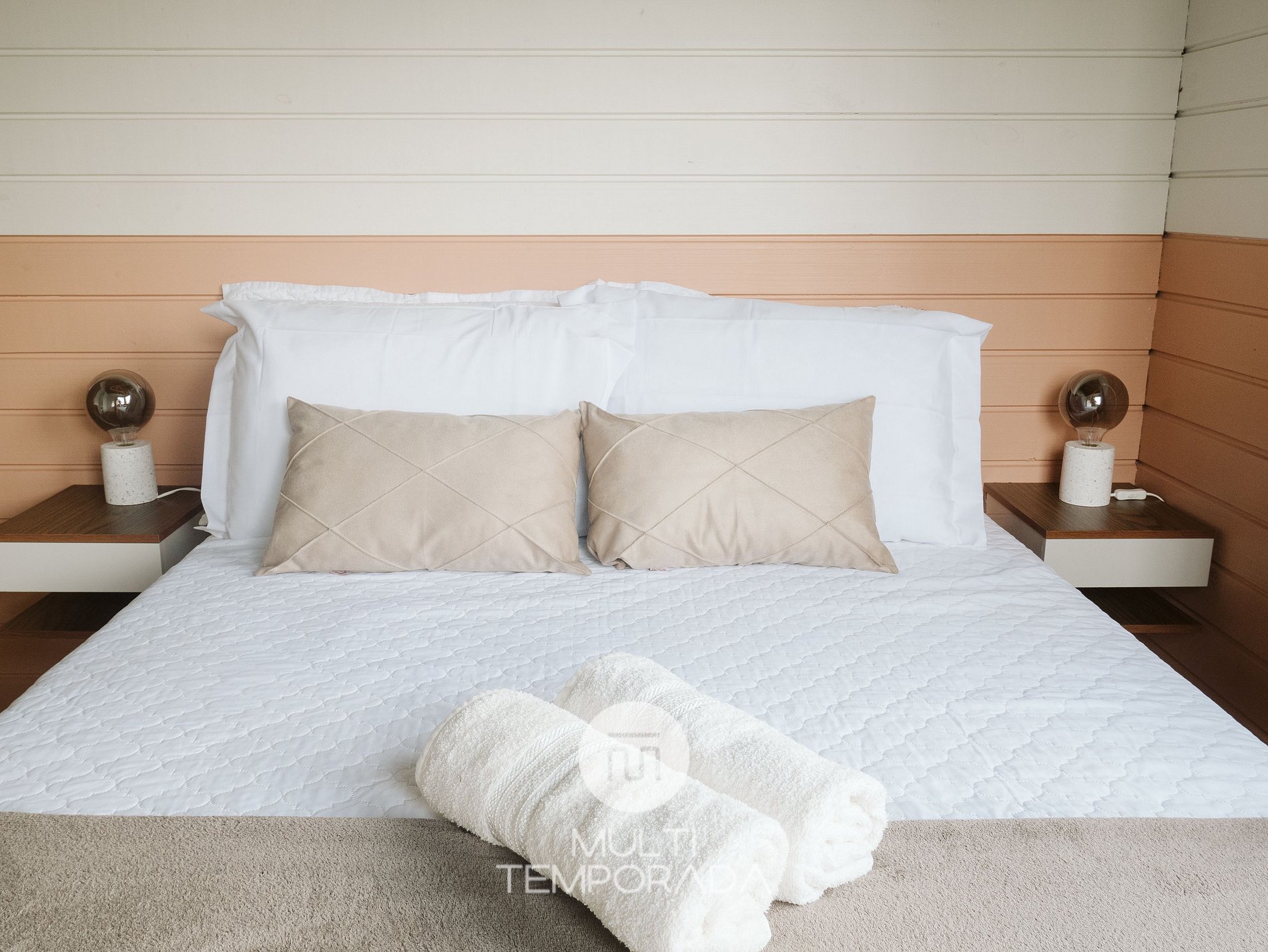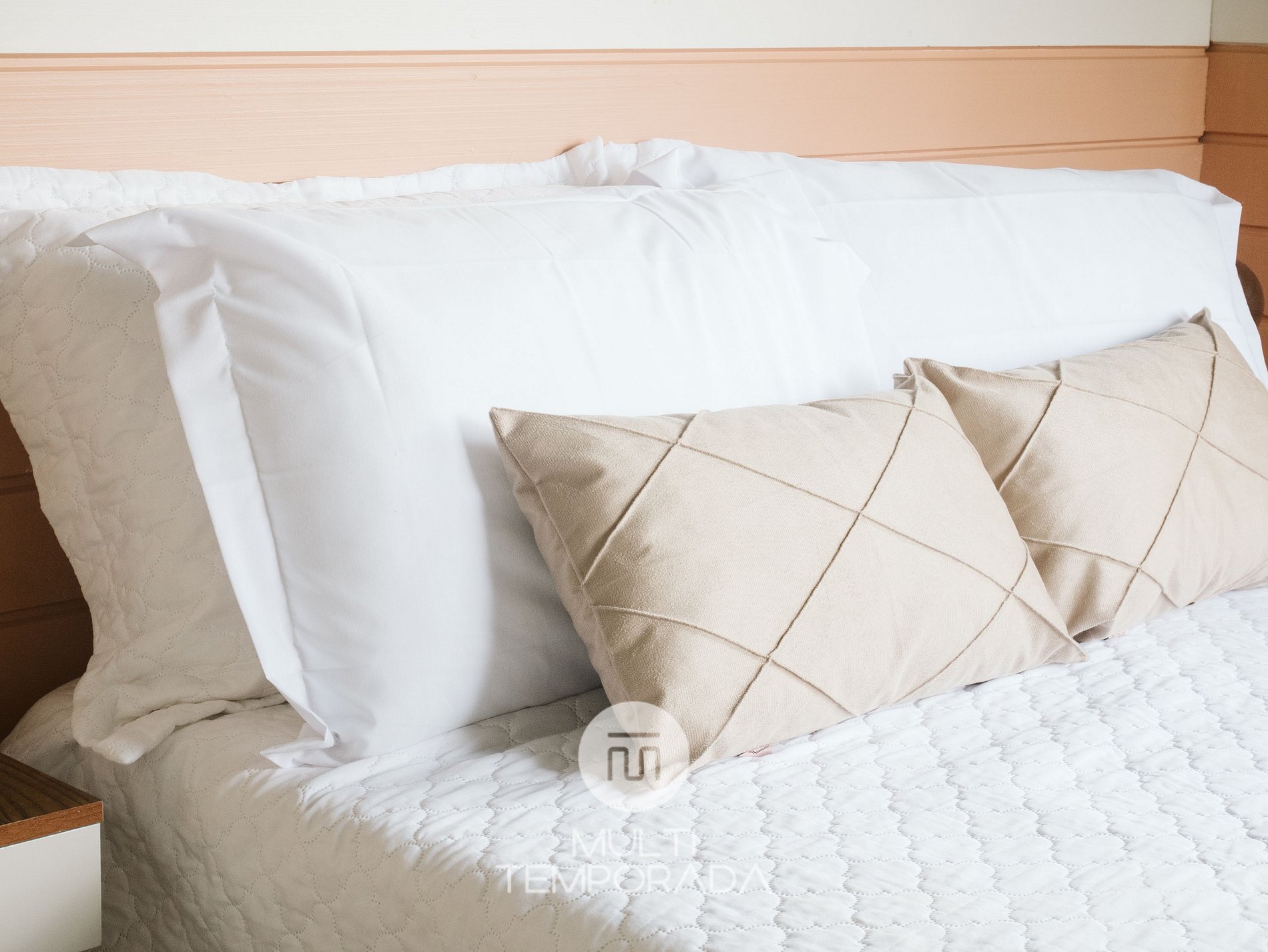 - Todas roupas de cama fio 150, 100% algodão tudo branco, 4 travesseiros por cama e diversas toalhas;