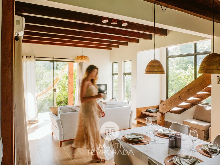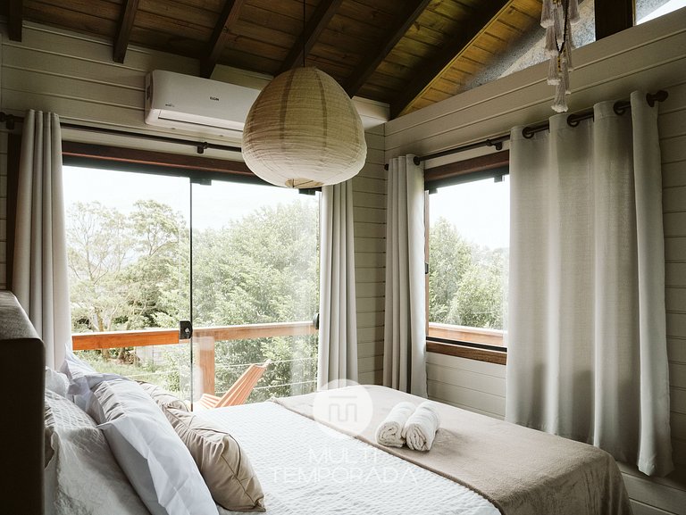 A Multitemporada apresenta a Casa Elua, propriedade singular em Ibiraquera - Imbituba - Santa Catarina. A infraestrutura da propriedade oferece: varanda com vista para as montanhas, rede para descanso, churrasqueira, 2 quartos, sendo 1 suíte climatizada, cozinha completa, sala de estar sofisticada e muito conforto. Além disso, tem como diferencial uma localização privilegiada: 1km da Lagoa de Ibiraquera e 2.5km da Praia do Rosa (15min de carro). Venha conhecer!