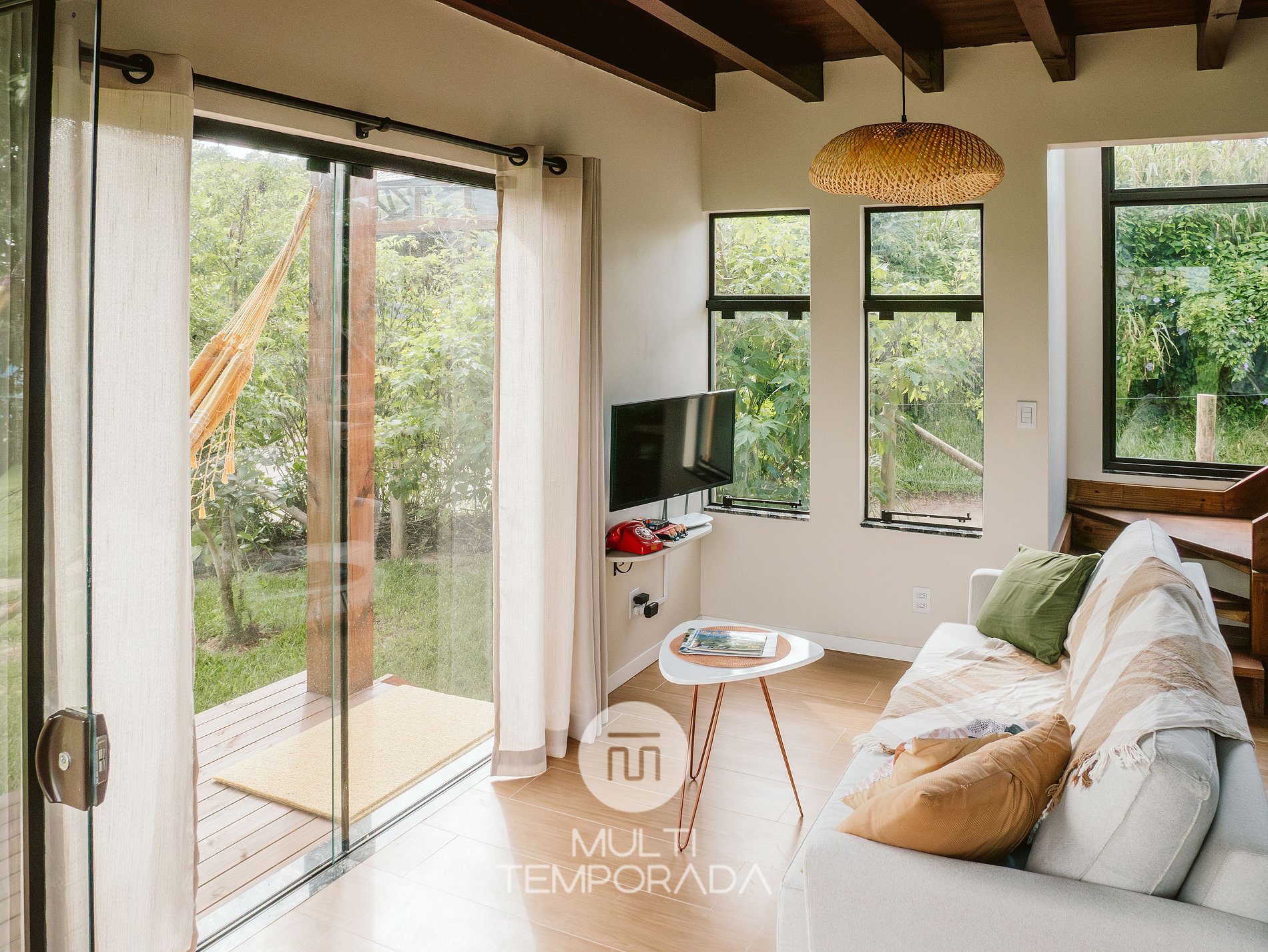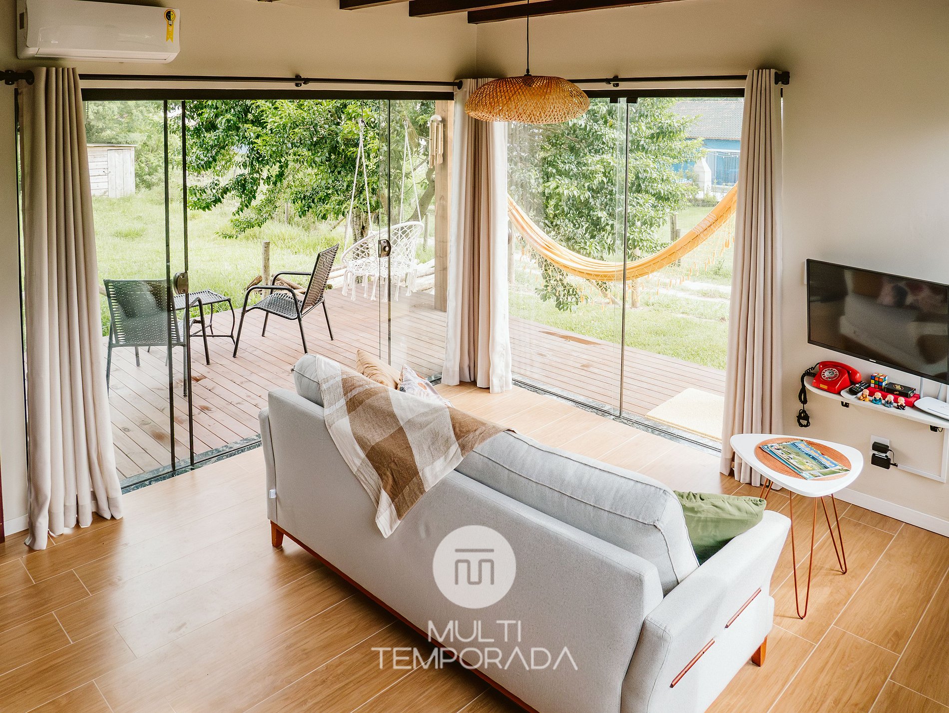 A Multitemporada apresenta a Casa Elua, propriedade singular em Ibiraquera - Imbituba - Santa Catarina. A infraestrutura da propriedade oferece: varanda com vista para as montanhas, rede para descanso, churrasqueira, 2 quartos, sendo 1 suíte climatizada, cozinha completa, sala de estar sofisticada e muito conforto. Além disso, tem como diferencial uma localização privilegiada: 1km da Lagoa de Ibiraquera e 2.5km da Praia do Rosa (15min de carro). Venha conhecer!