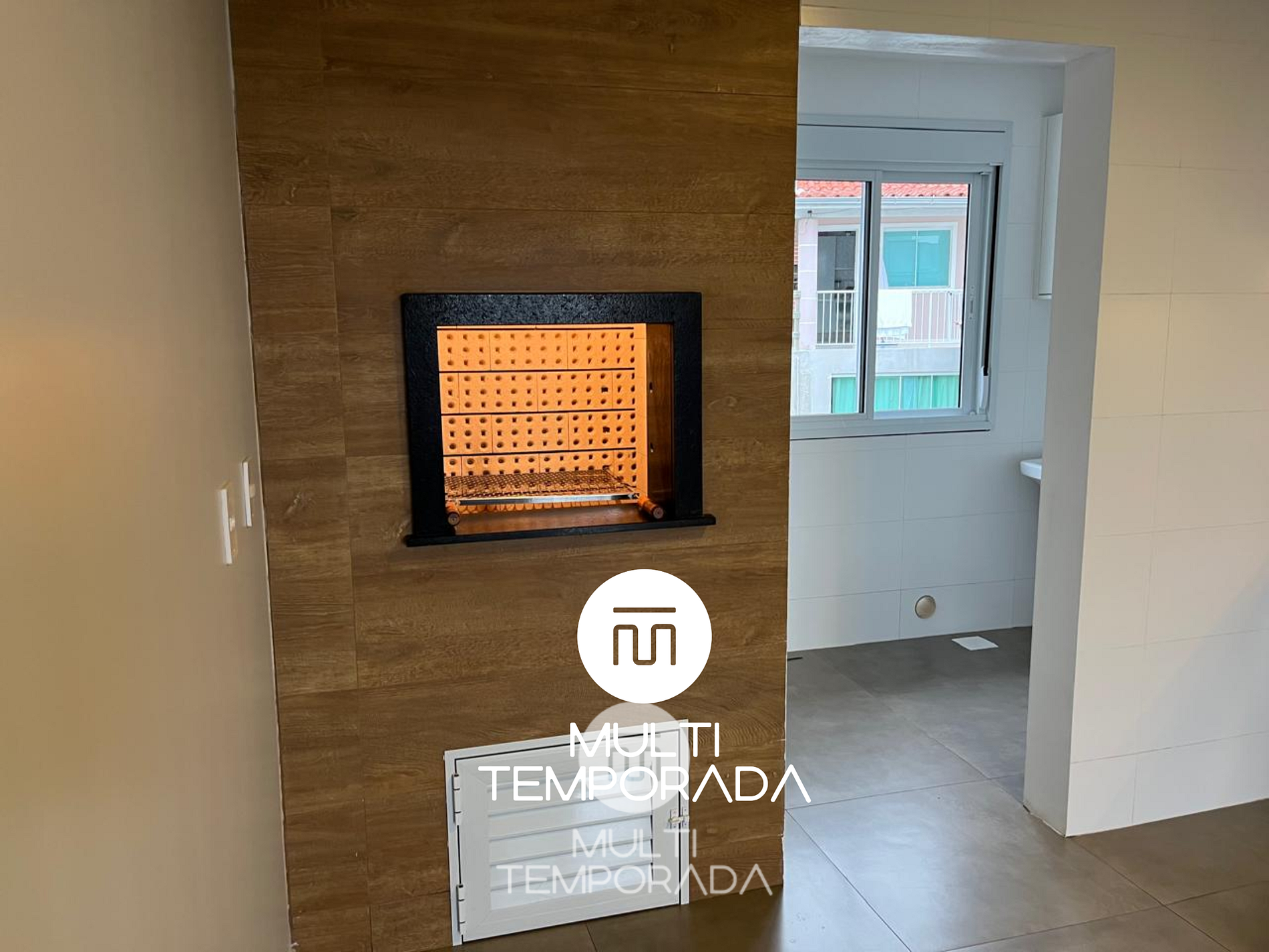 A acomodação conta com churrasqueira privativa, acompanhada de grelha, espeto, tábua e faca de churrasco, garantindo momentos deliciosos ao ar livre.