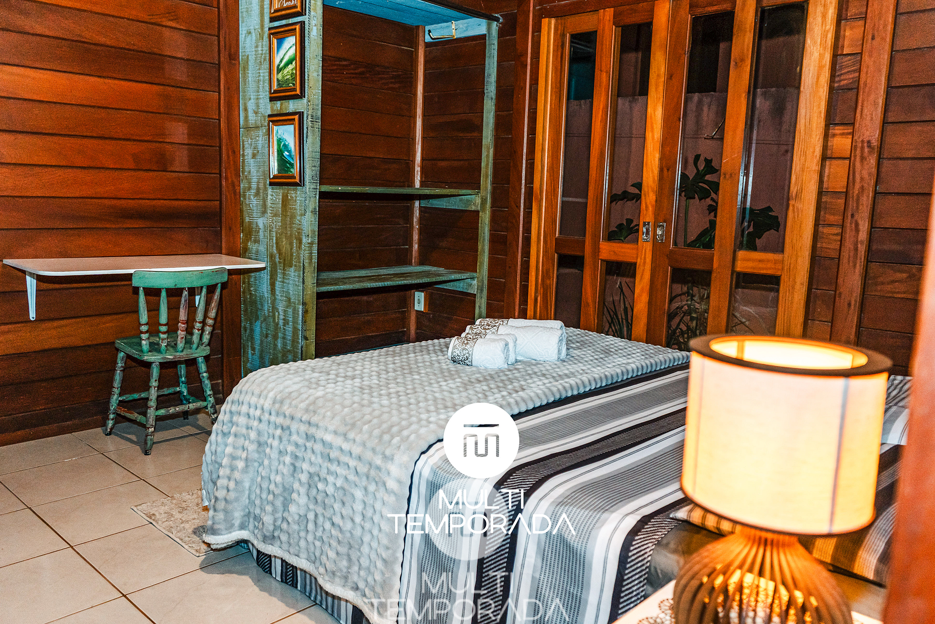 O chalé possui 4 dormitórios, sendo 2 suítes, todos climatizados e com acesso a varanda, garantindo noites tranquilas e muito conforto.