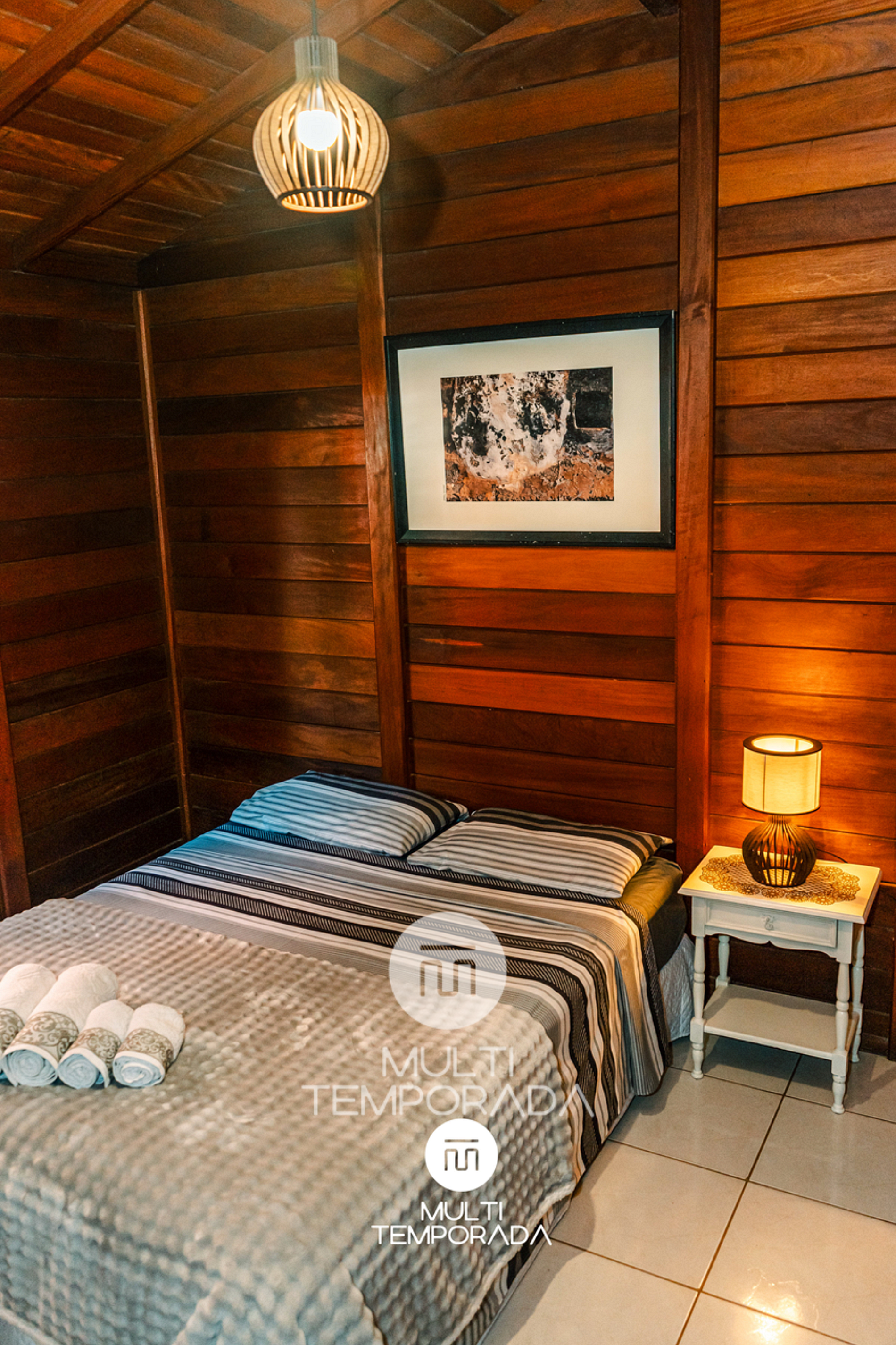 A poucos passos da areia, o Chalé Campeche 50mts do Mar é daqueles lugares que conquistam já na chegada: o perfume da madeira, o teto alto que abraça o ambiente e a brisa do mar que se mistura ao verde ao redor criam uma atmosfera que transmite paz, liberdade e aquele sentimento irresistível de “eu mereço viver isso”.