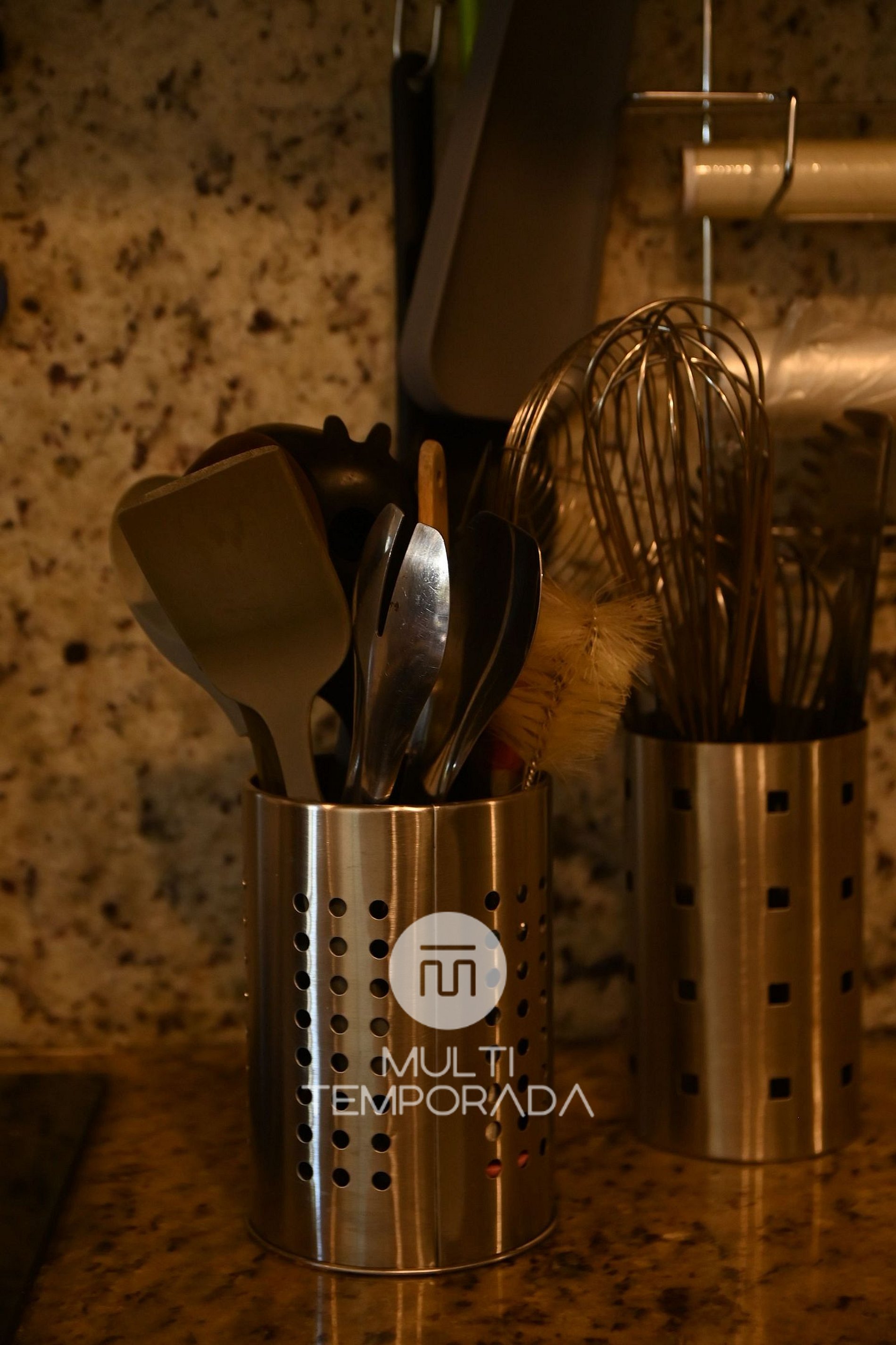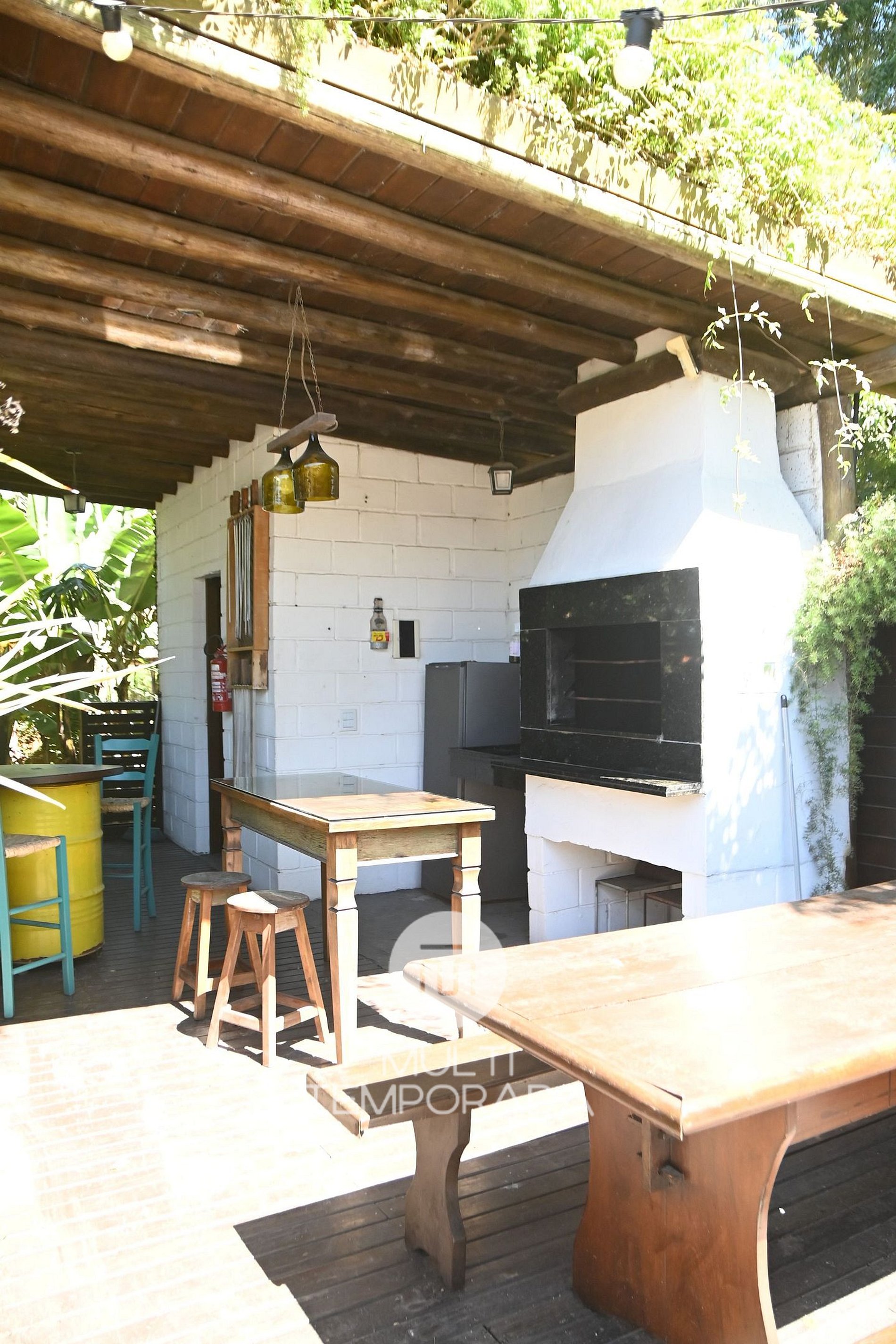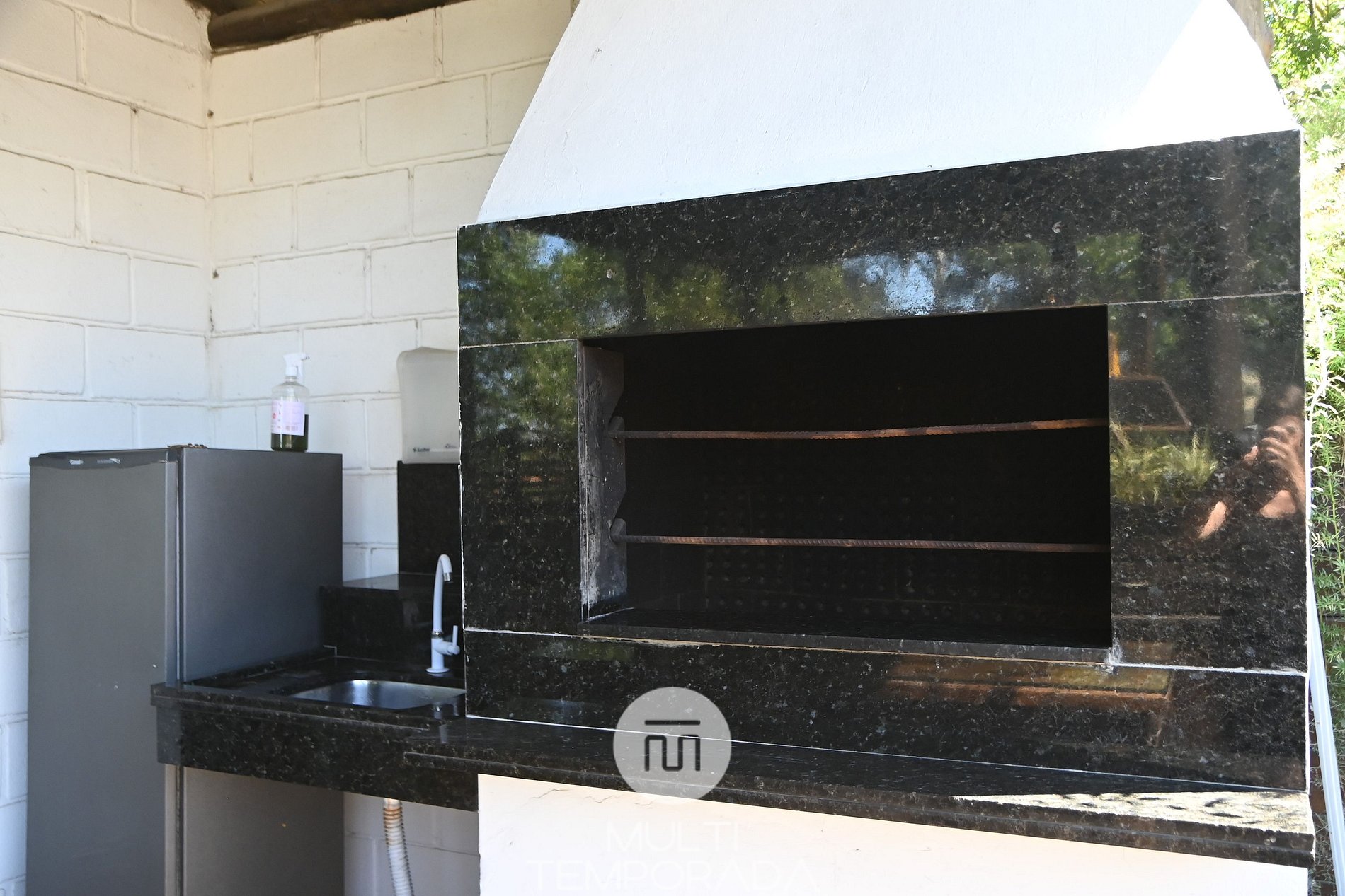 Para os momentos de confraternização, o imóvel oferece churrasqueira, equipada com grelhas e espetos, ideal para reunir família e amigos em um clima descontraído.