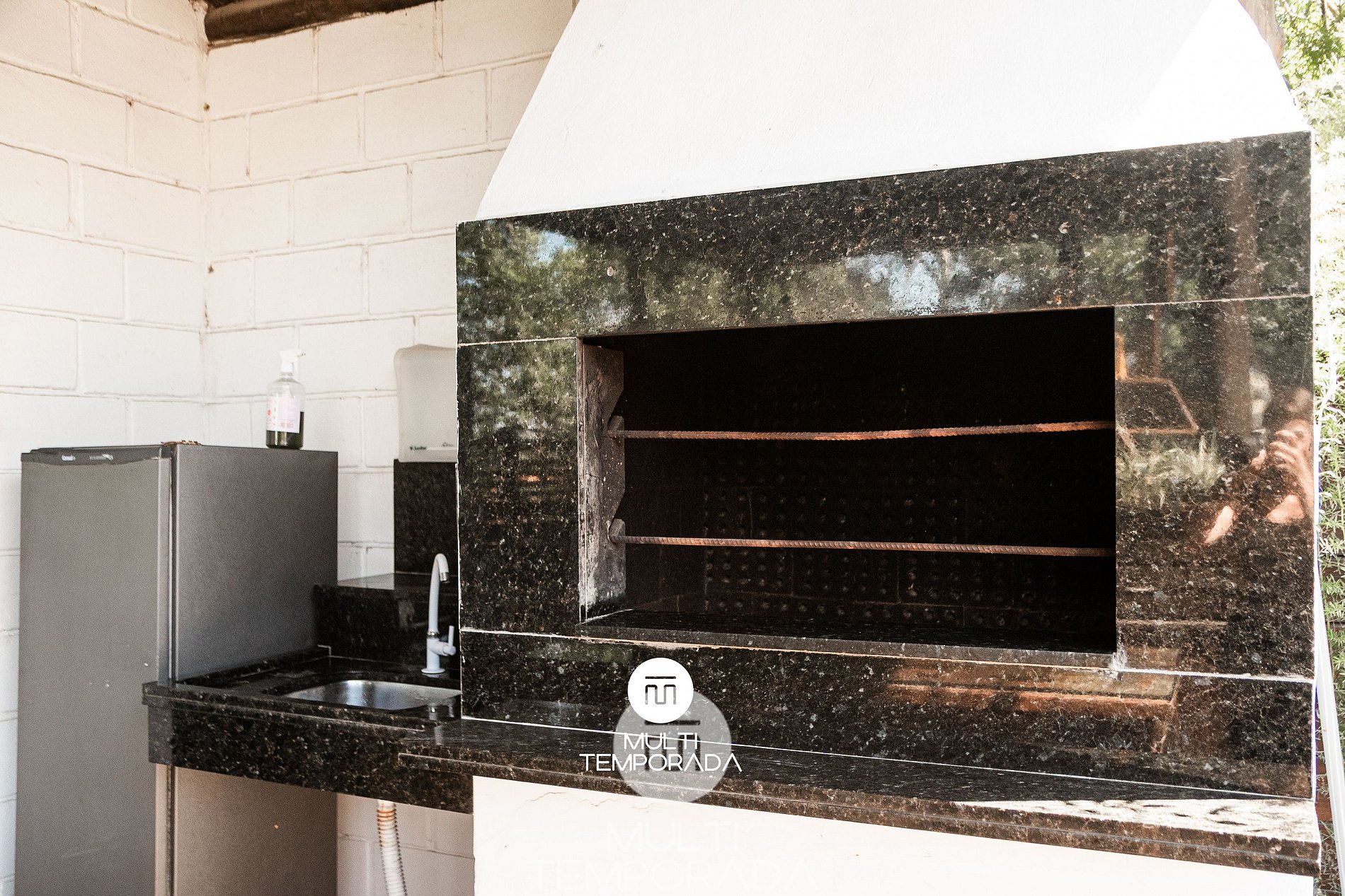 Para os momentos de confraternização, o imóvel oferece churrasqueira, equipada com grelhas e espetos, ideal para reunir família e amigos em um clima descontraído.